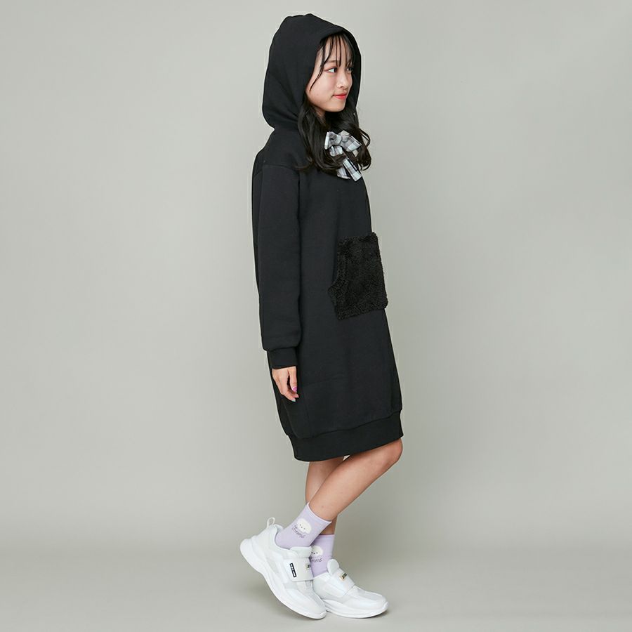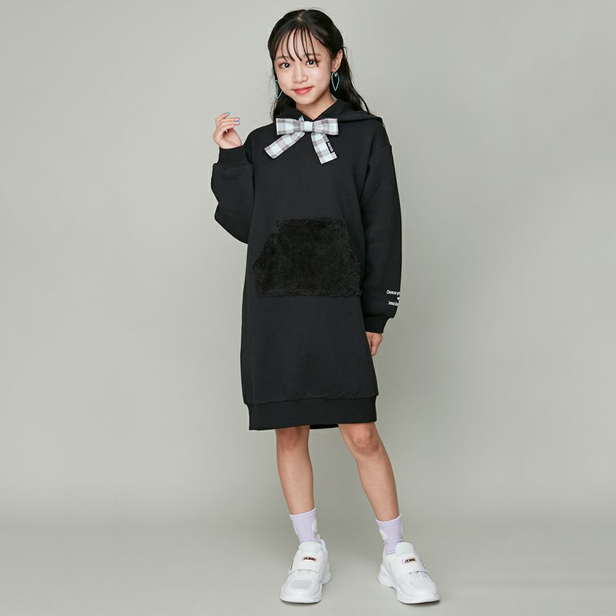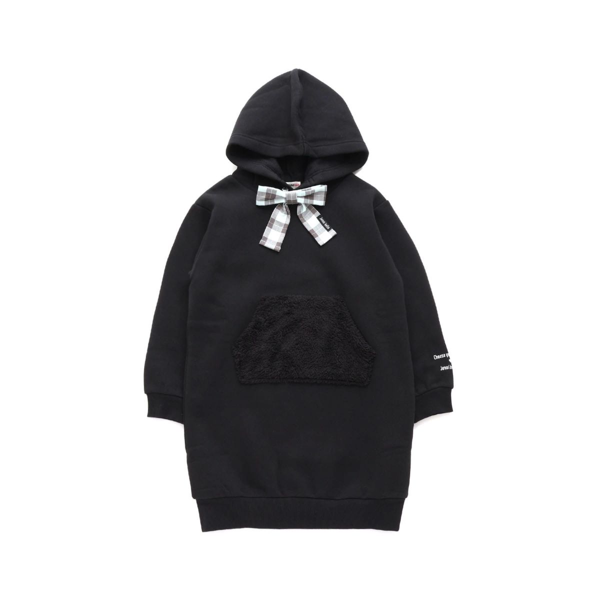 【74%off】裏起毛ボアポケットリボン付きワンピ