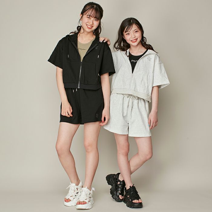 【65%off】半袖ZIPパーカー+ショーパンセット