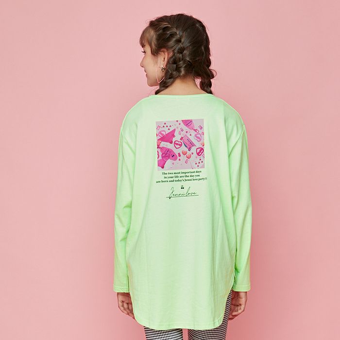 バックの鮮やかな転写プリントが差し色になった1枚です☆