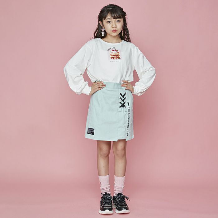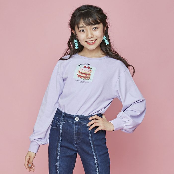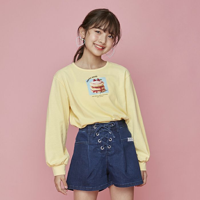 ショート丈なのでハイウエストのボトムを合わせるとバランスがよく見えておすすめ◎