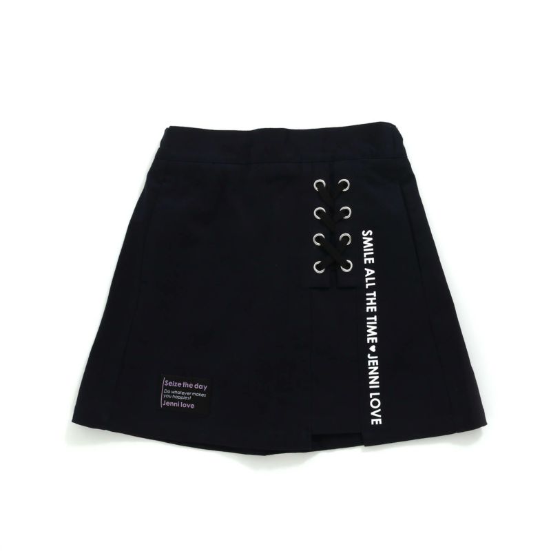 さりげないレースアップがかわいい定番の台形スカートシルエット。
