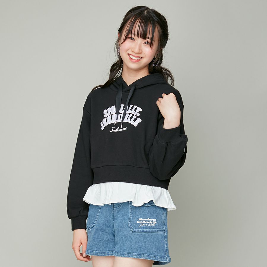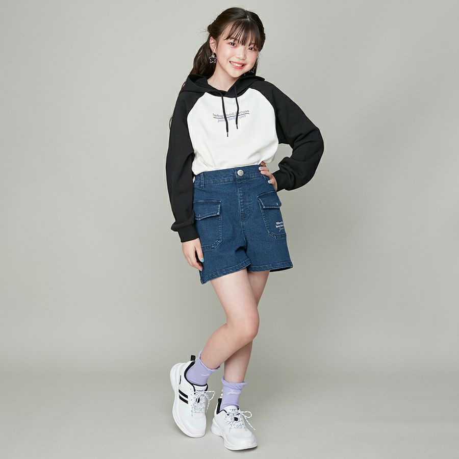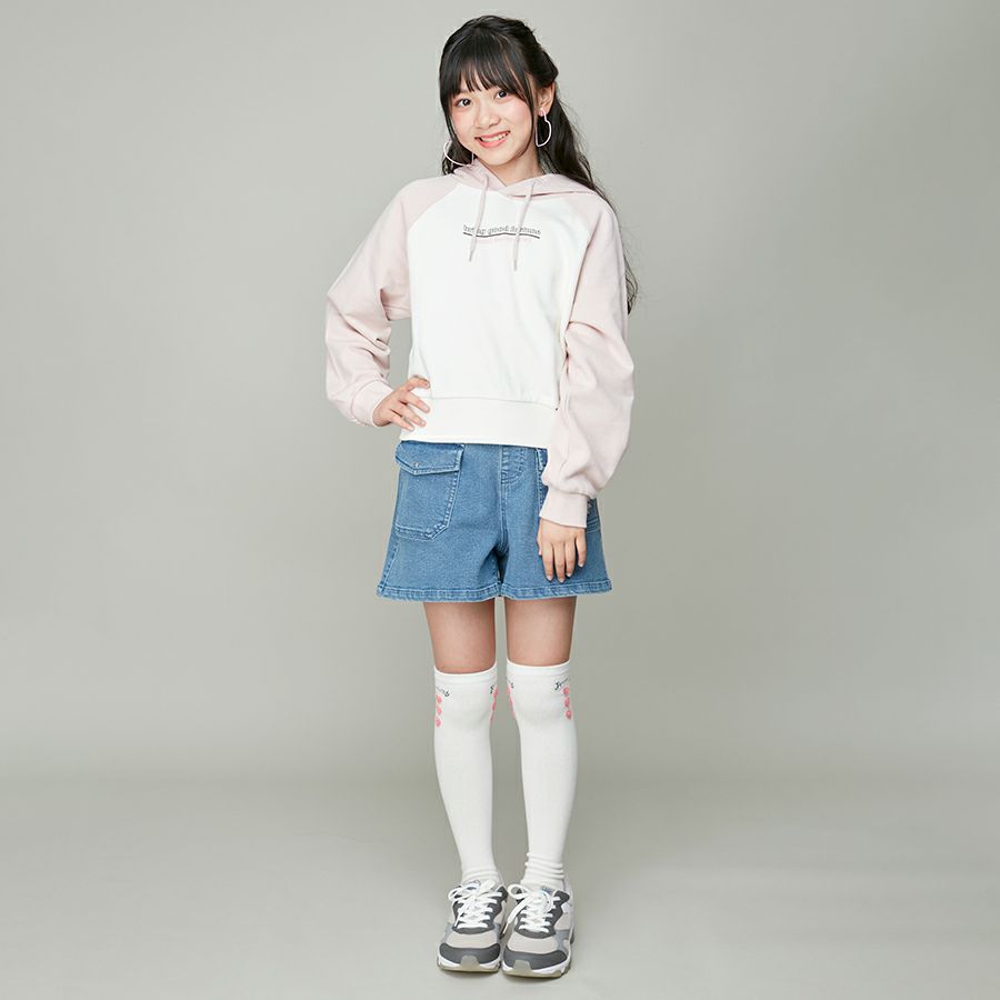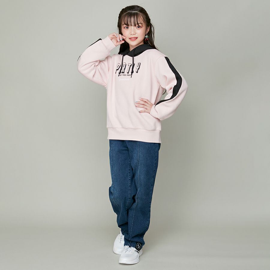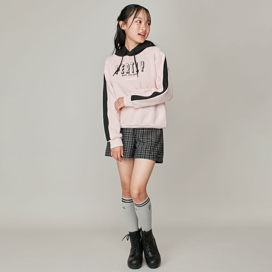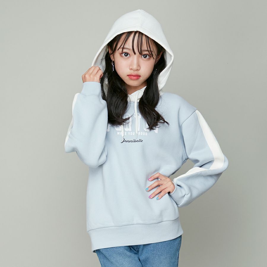 【74%off】裏起毛配色ステッチショート丈パーカー