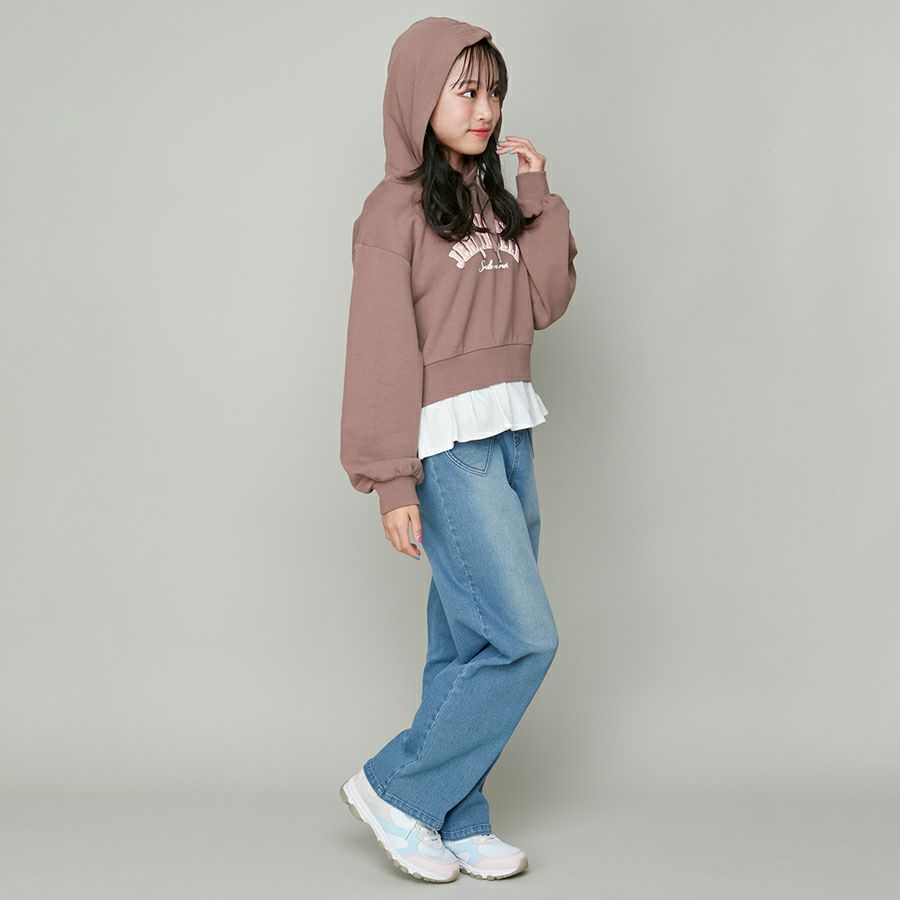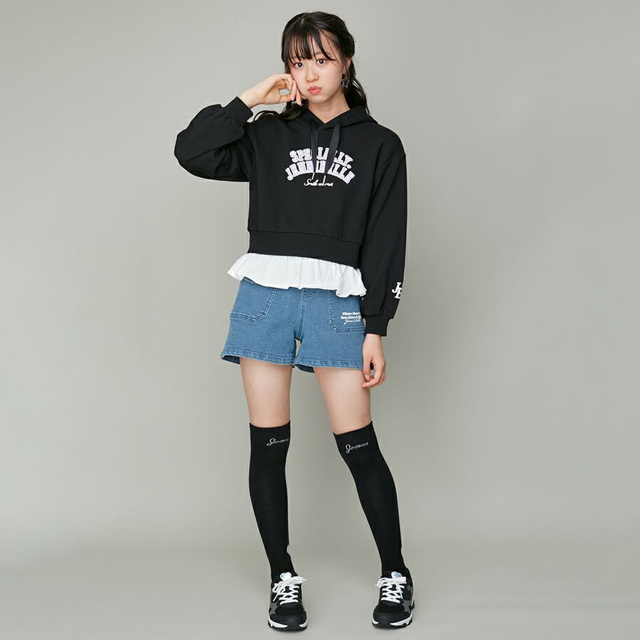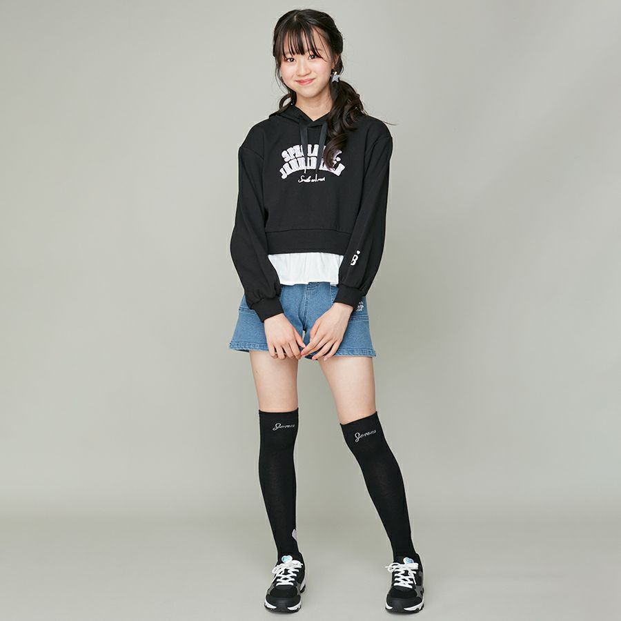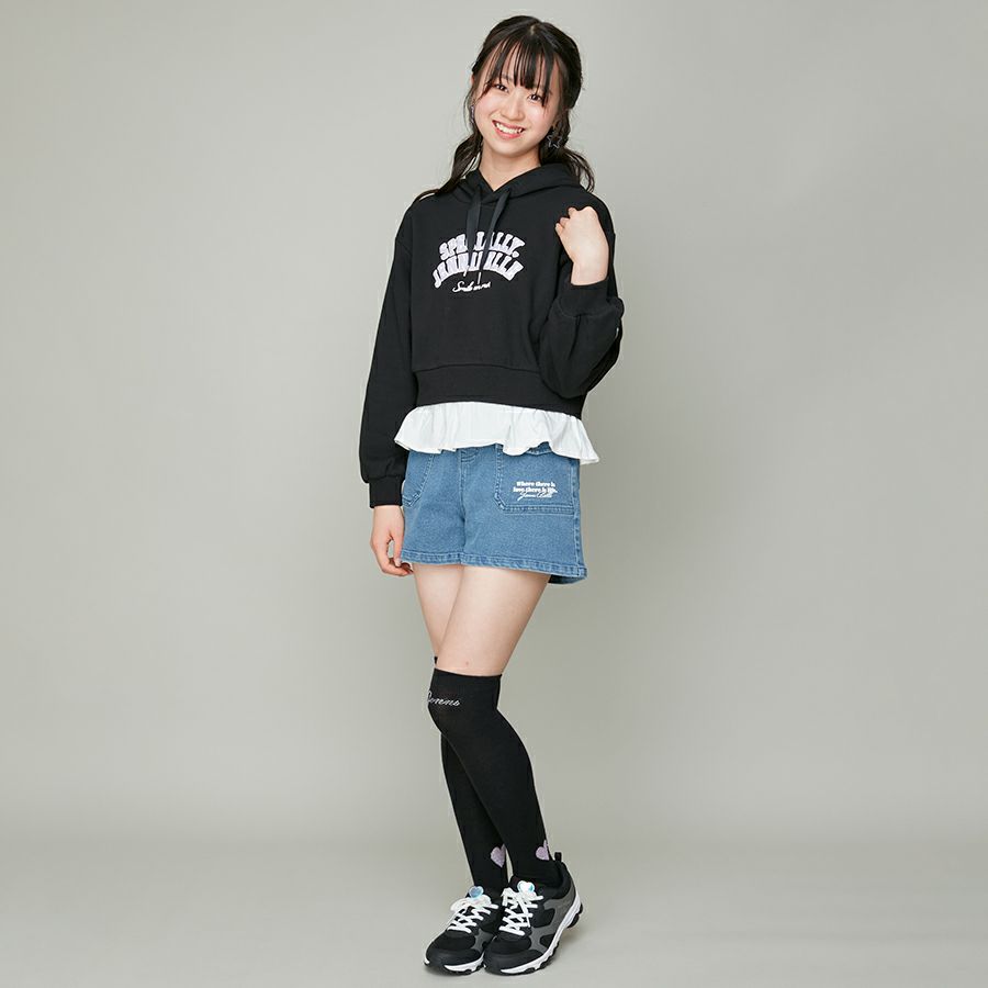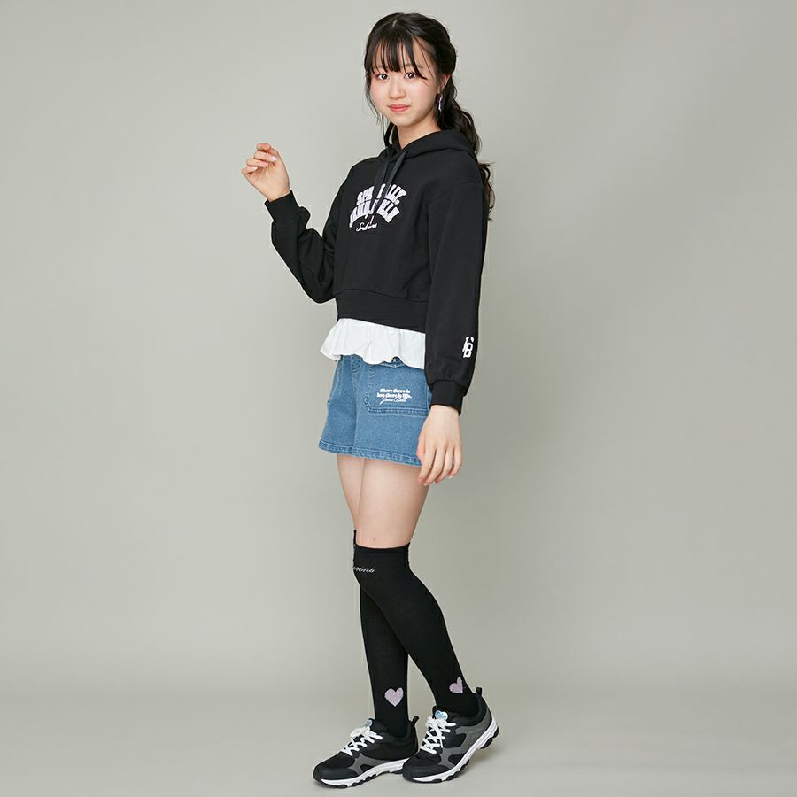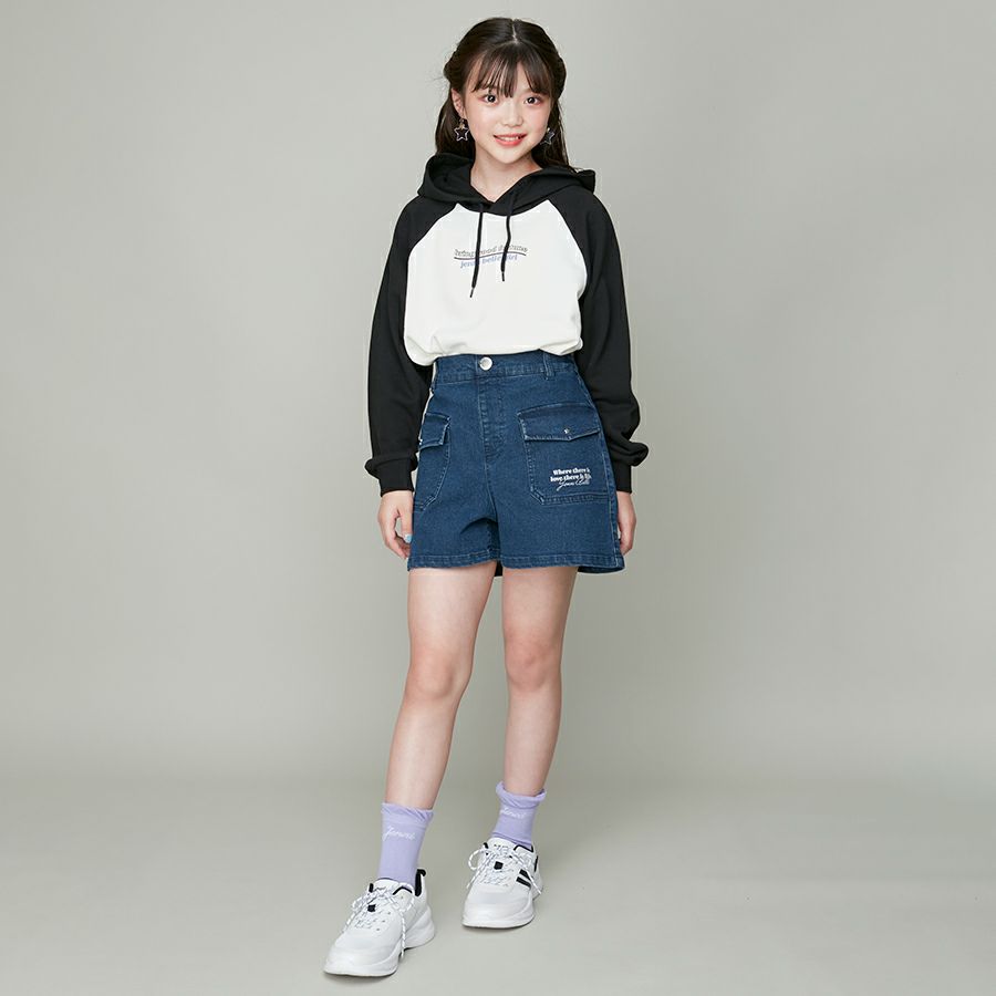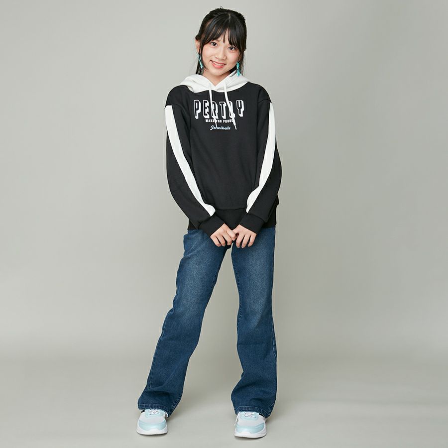 【74%off】裏起毛配色ステッチショート丈パーカー