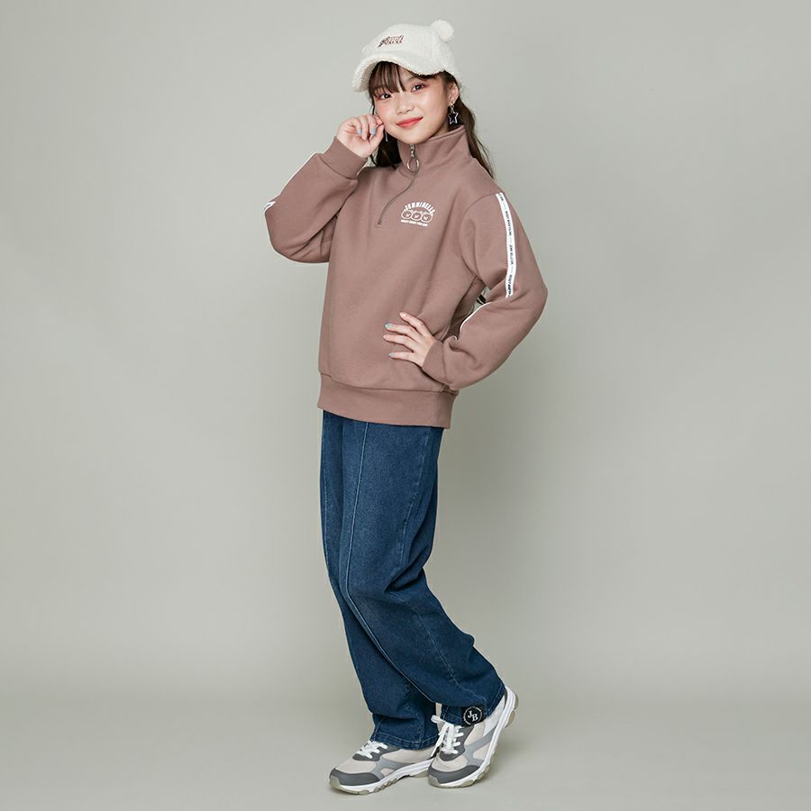 【74%off】裏起毛袖ラインハーフZIPトレーナー