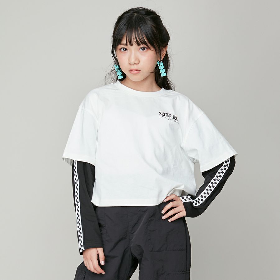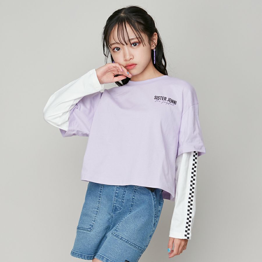 【75%off】ラインそでレイヤード風ロンT