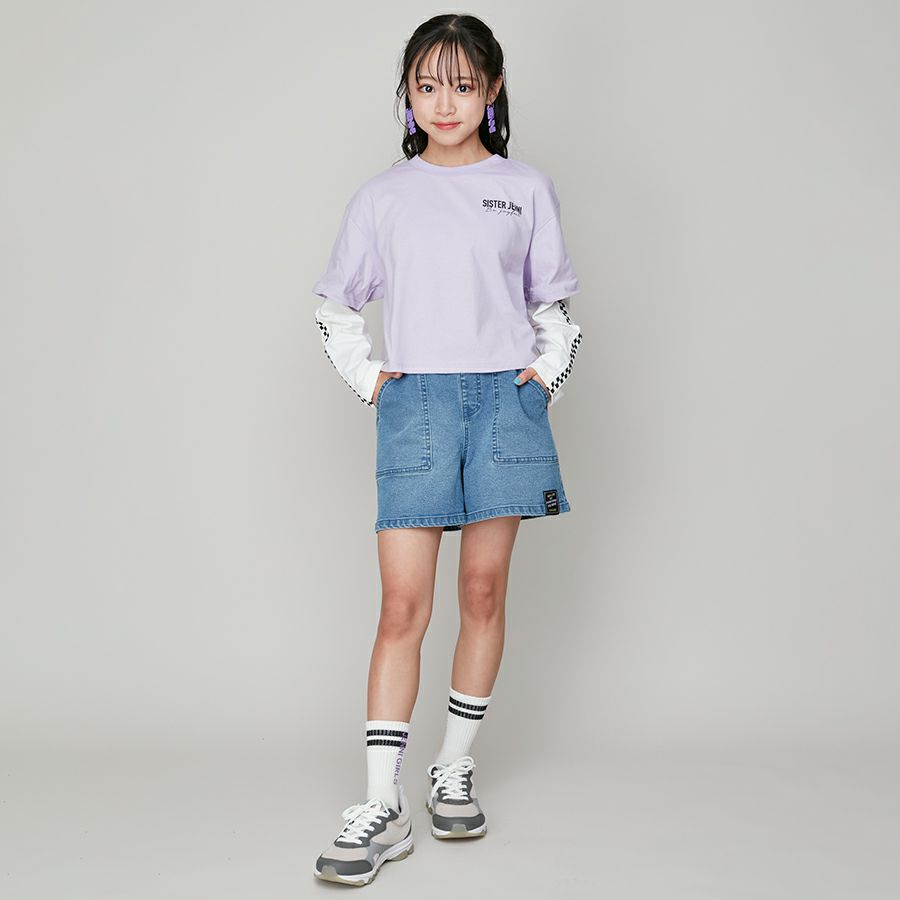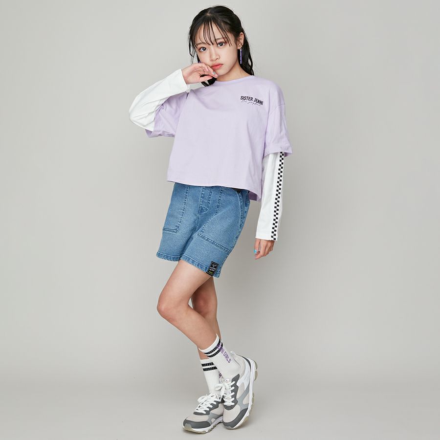 【75%off】肩あきレイヤード風短丈T