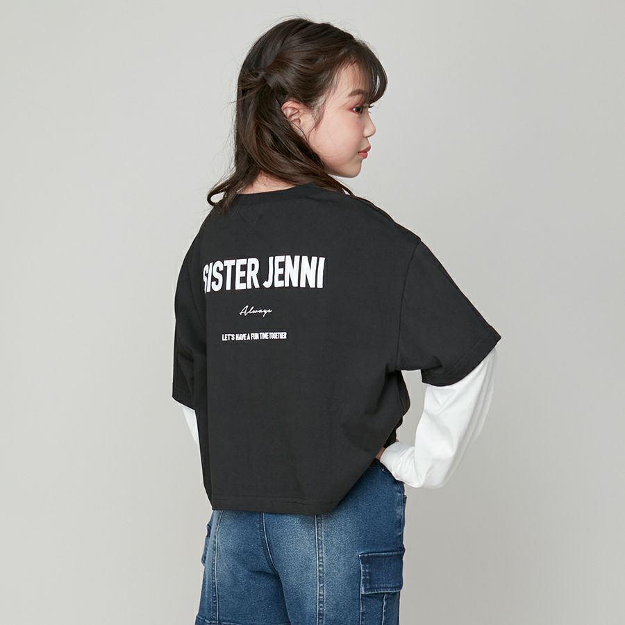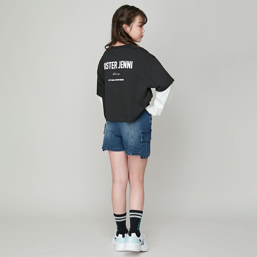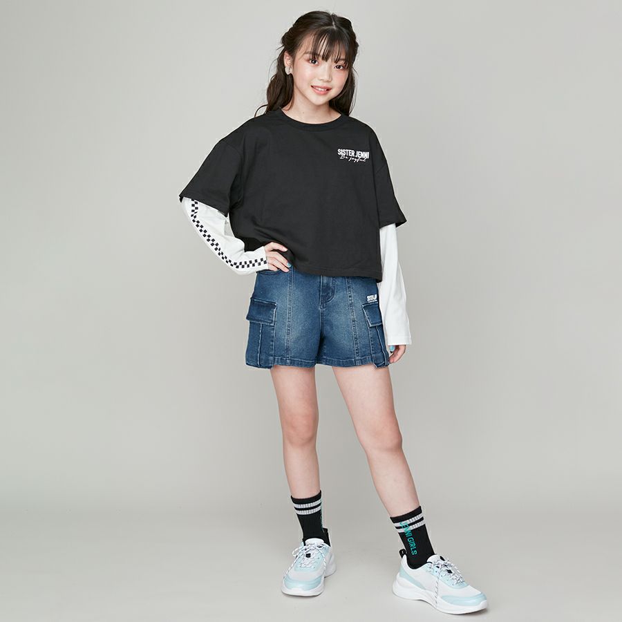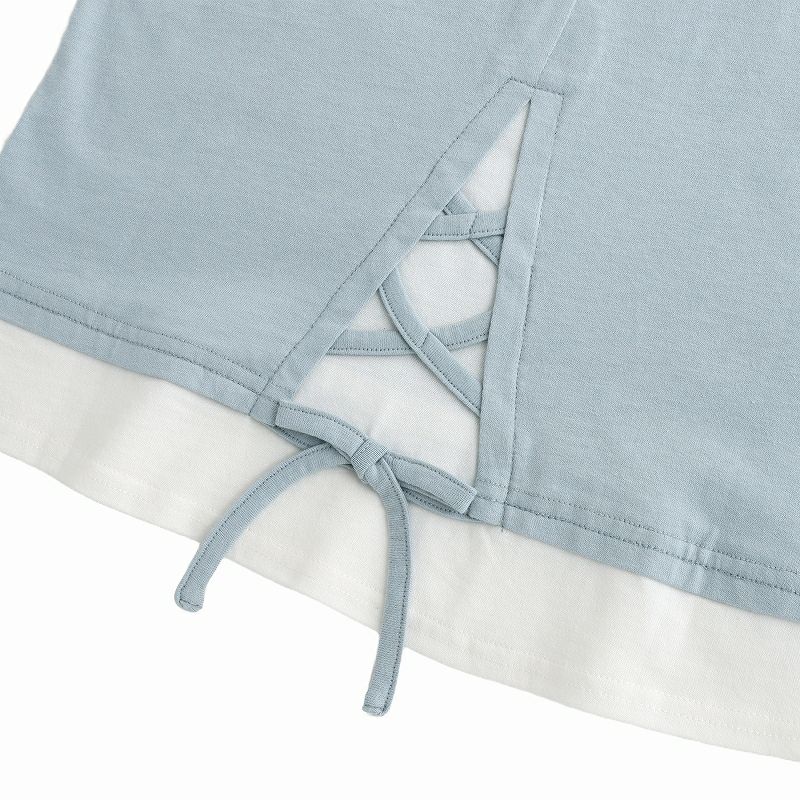 【75%off】配色肩あきレイヤード風短丈Tシャツ