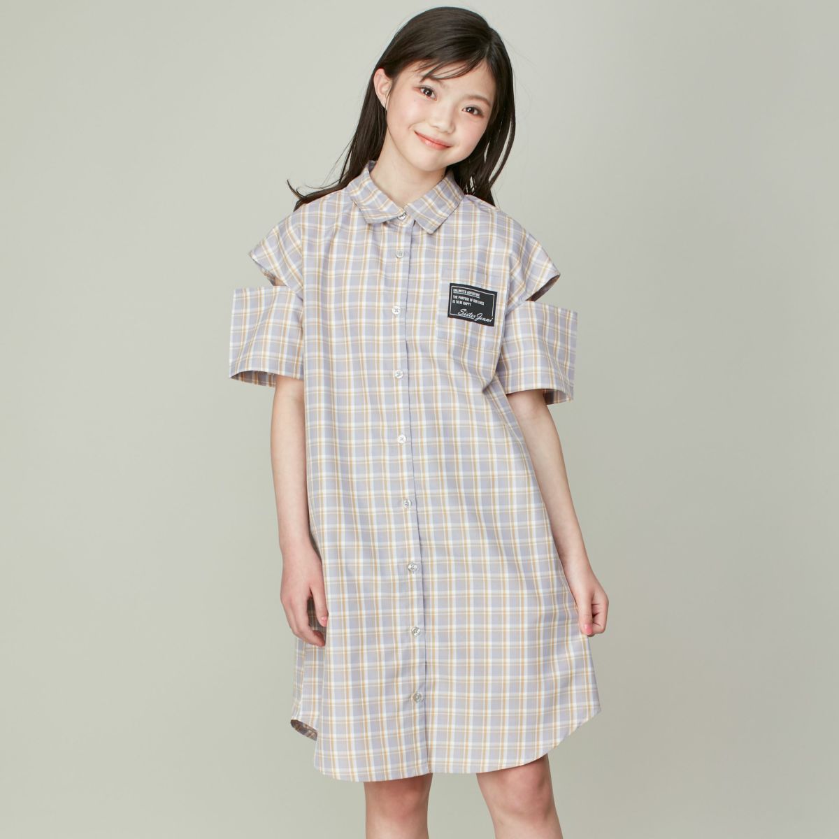 【65%off】シアーシャツ前結びドッキングワンピ