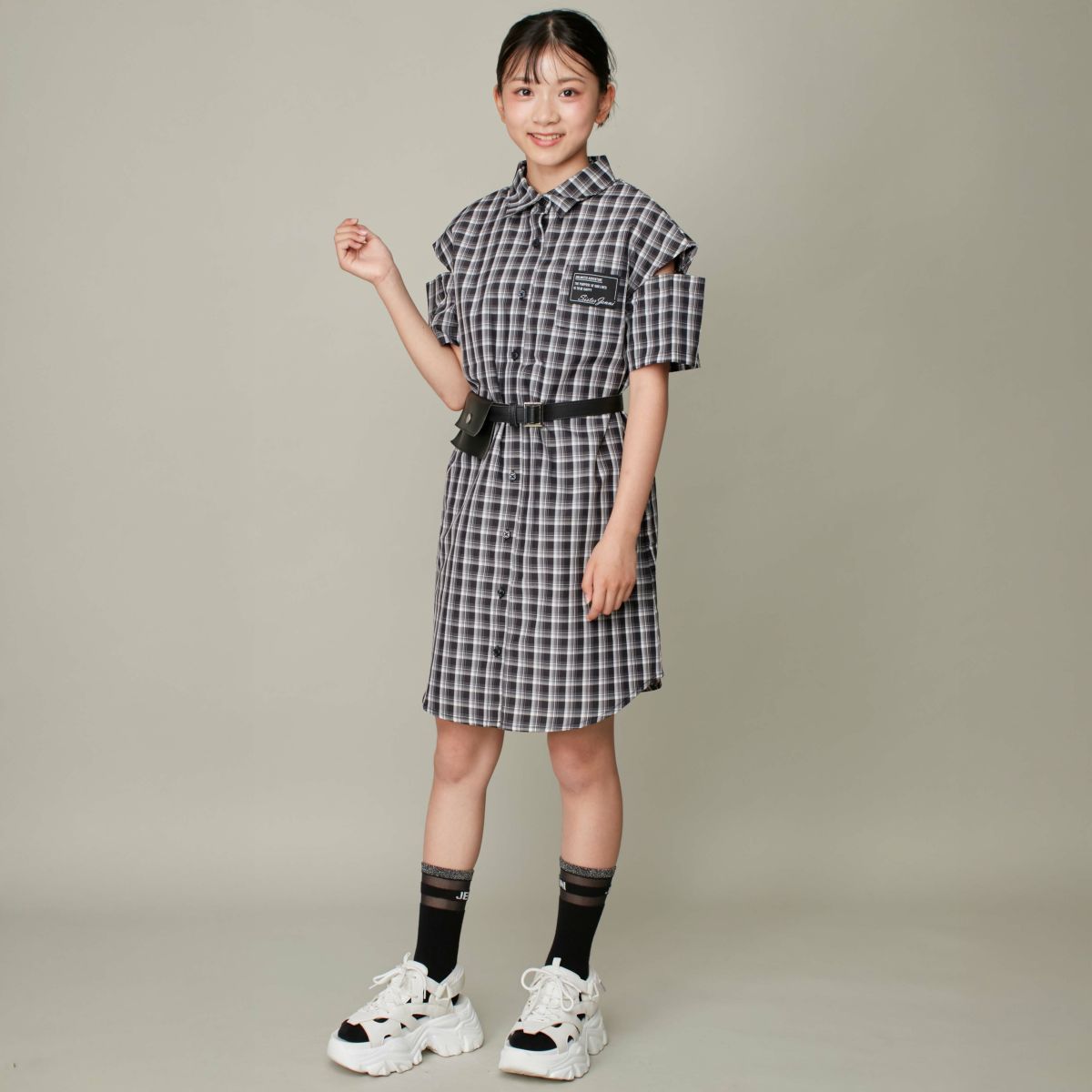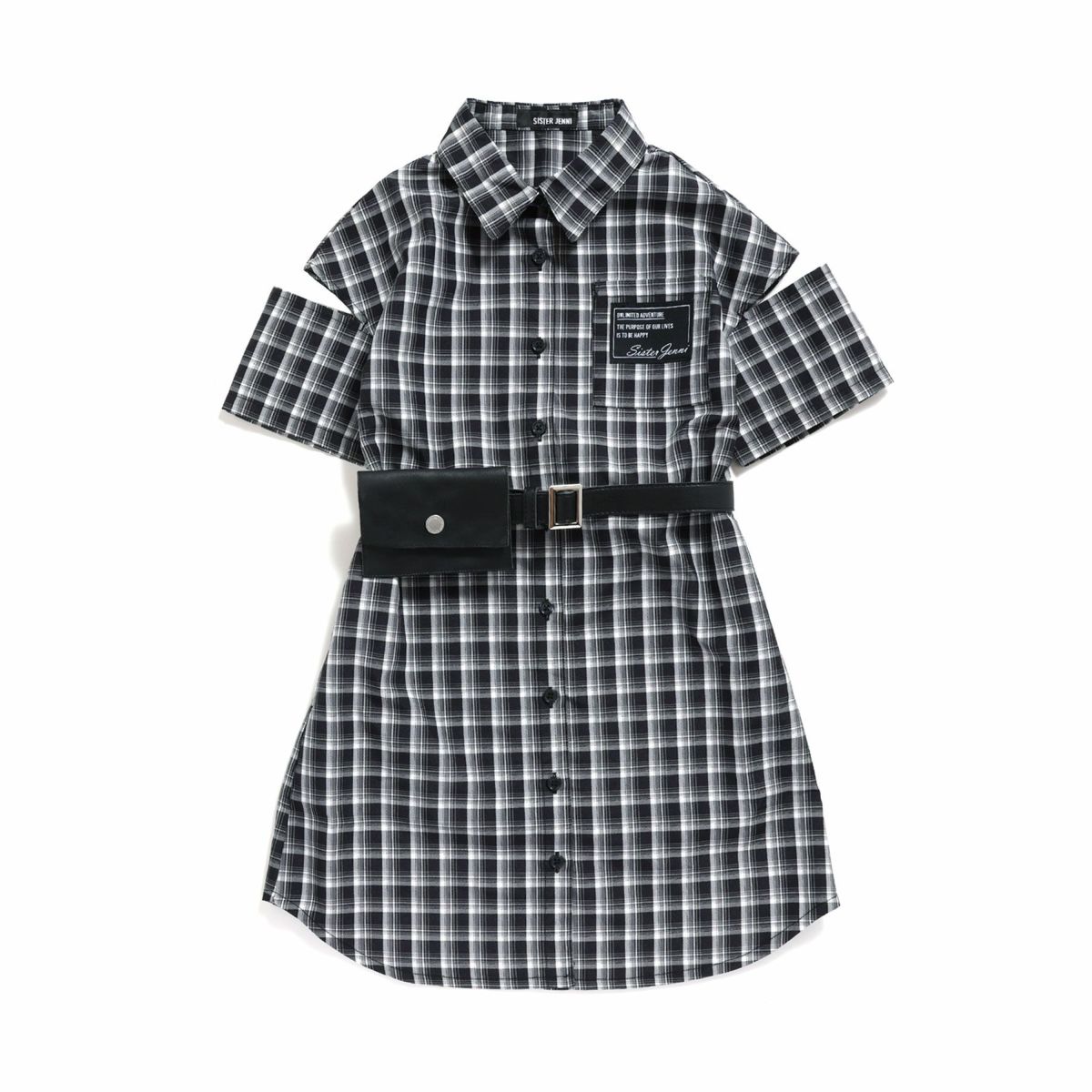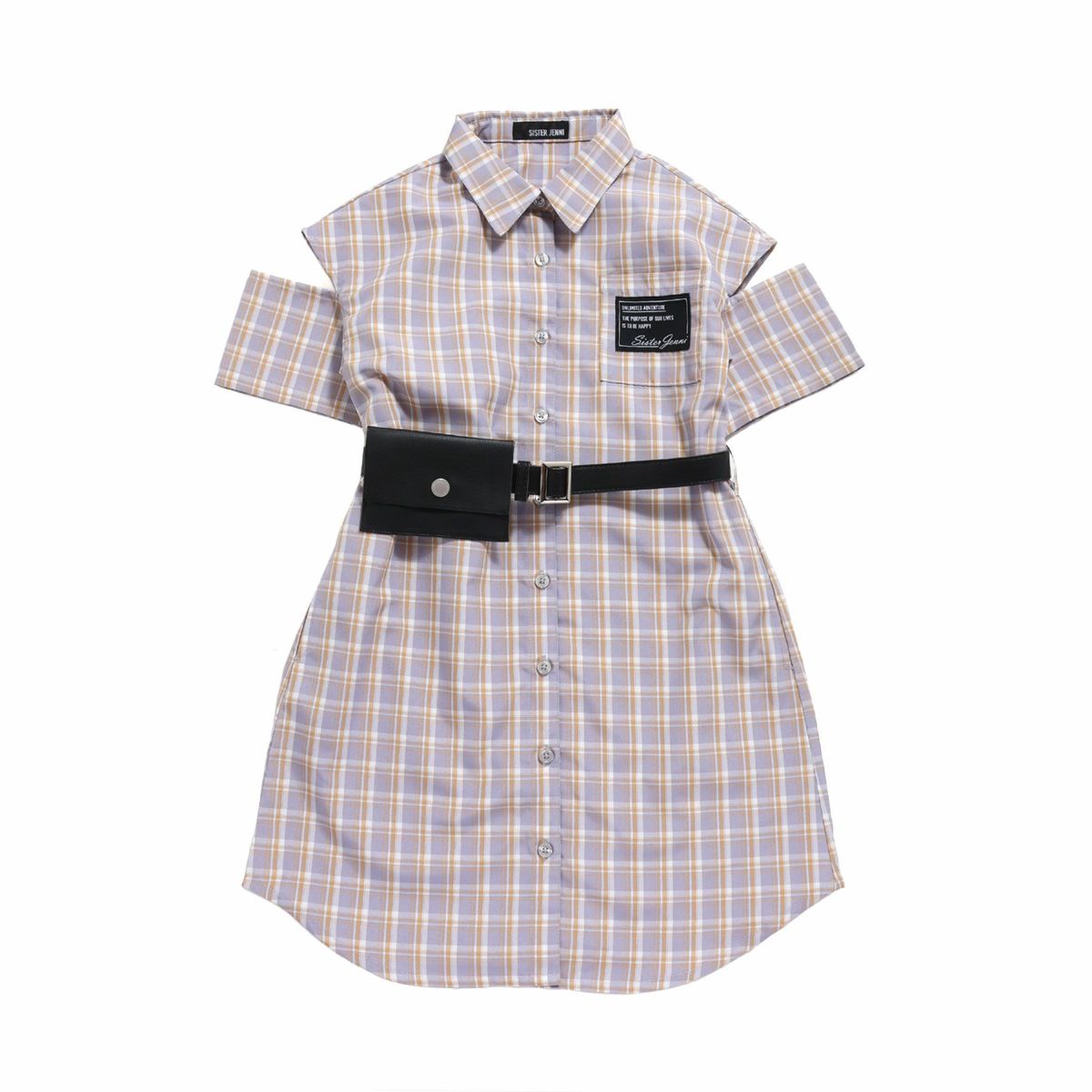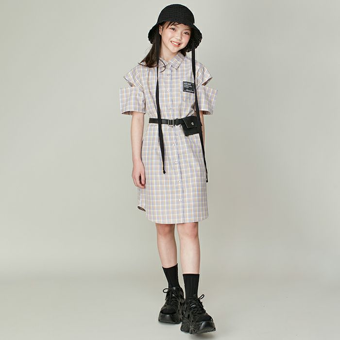 【69%off】ポーチベルト付き肩あきシャツワンピ