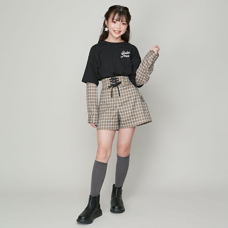 【75%off】チェックそでレイヤード風BIGロンT