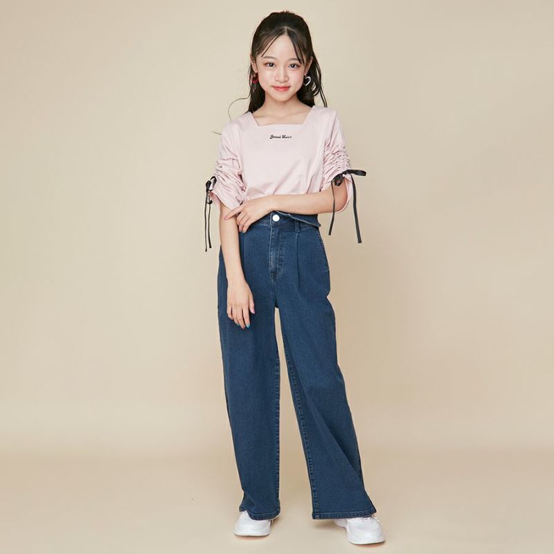 5分袖で着るとギャザーが寄ってリボンが映えるので可愛らしい印象に。