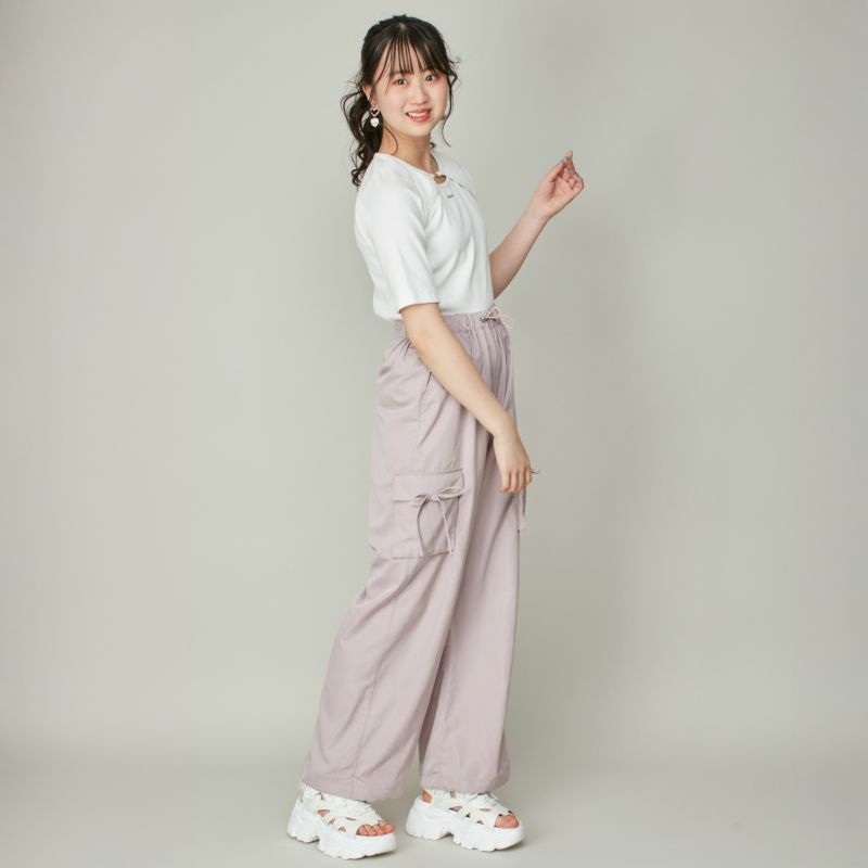 コンパクトなトップスにはボリュームのあるバルーンスカパンや