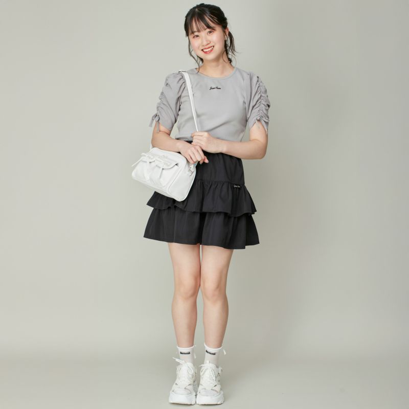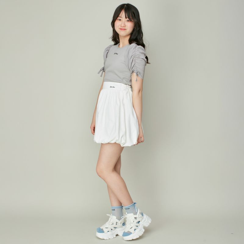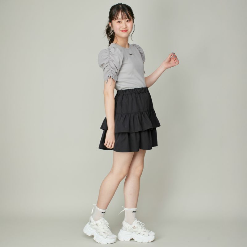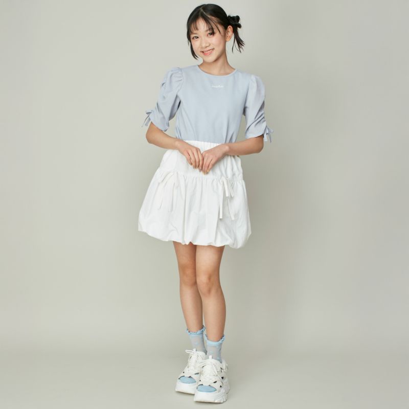 身頃と違った生地感が柔らかい印象にしてくれるよ♪