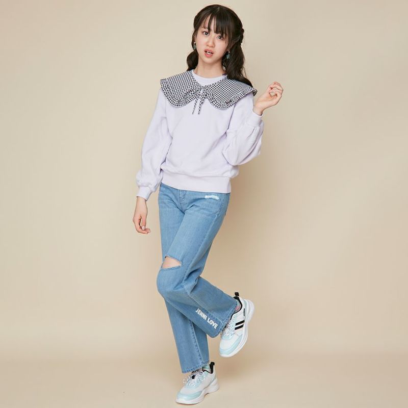 トレーナーはゆったりめのサイズ感でガーリーだけど抜け感のあるイマっぽい着こなしに。