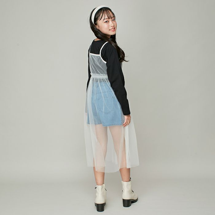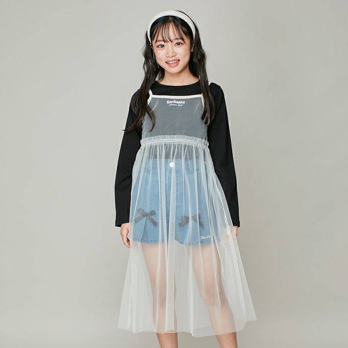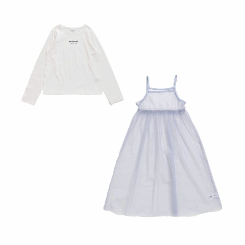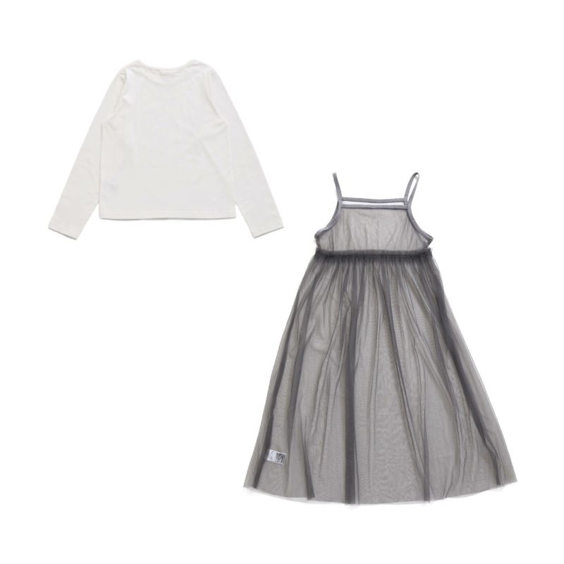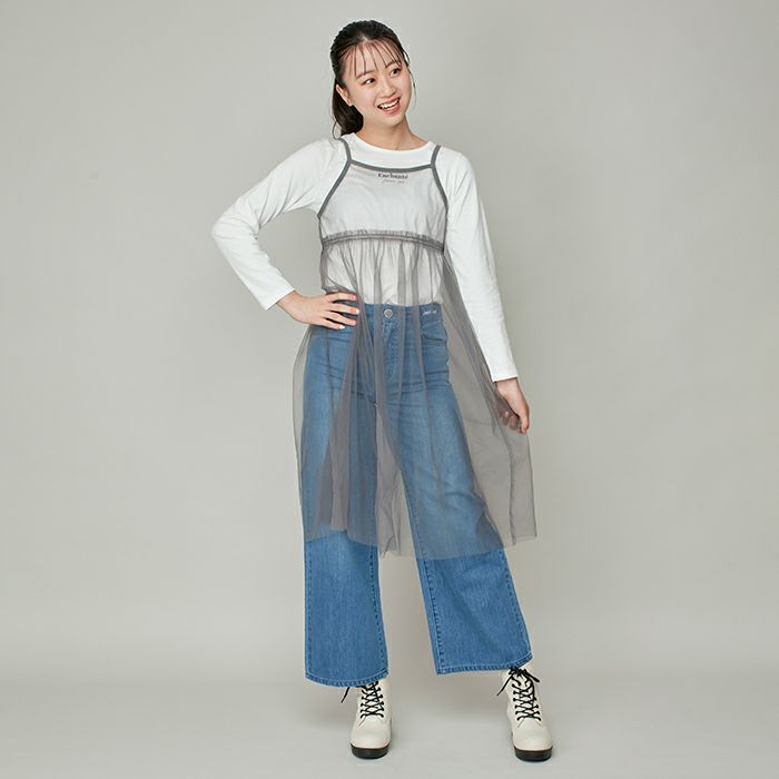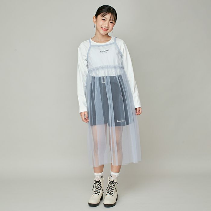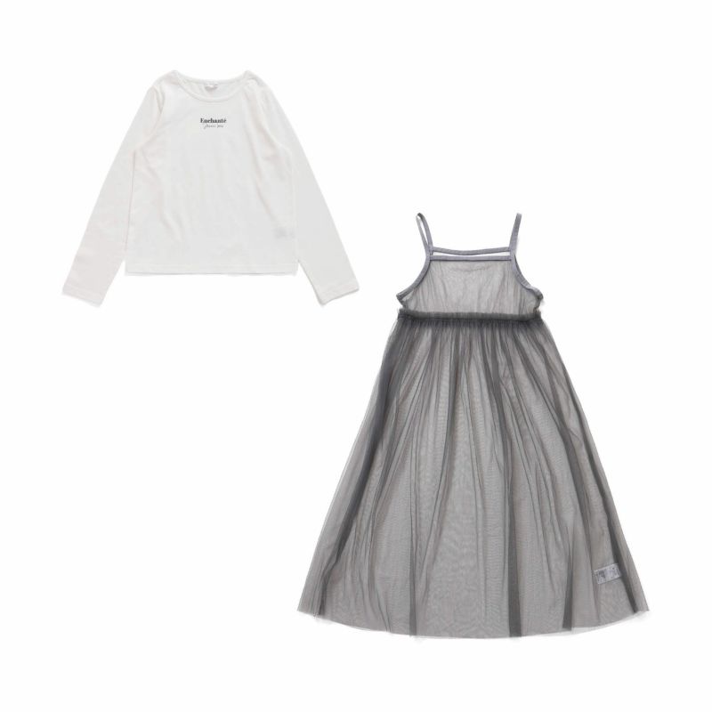 シンプルロンTに透け感のあるチュールキャミワンピのセットアイテム。