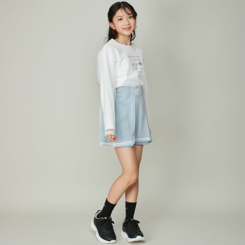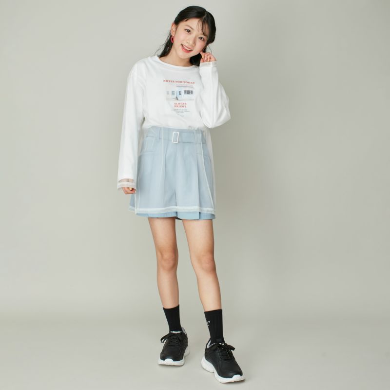 [素材]<Tシャツ>本体:綿100% リブ部分:綿95%、ポリウレタン5% <チュールTシャツ>本体:ポリエステル100%