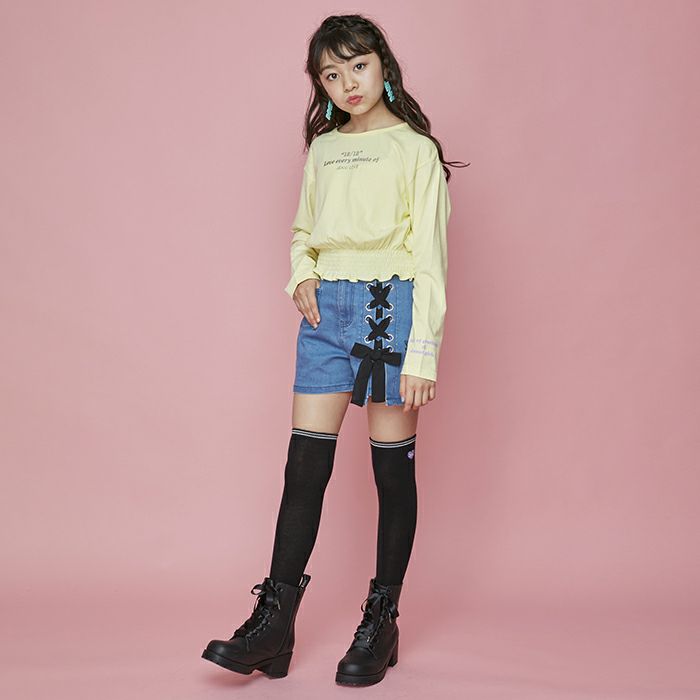 【65%off】裏起毛肩リボン付きショート丈パーカー