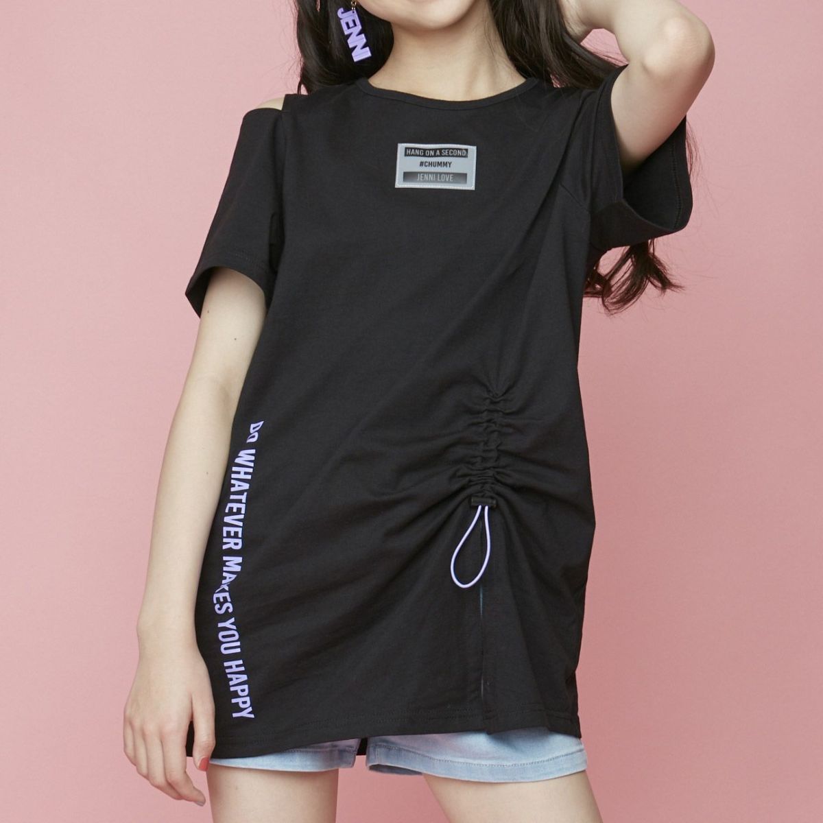 【75%off】すそロゴリブ肩ZIPTシャツ