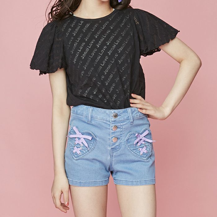 【79%off】パフスリーブハートロゴ刺繍Tシャツ