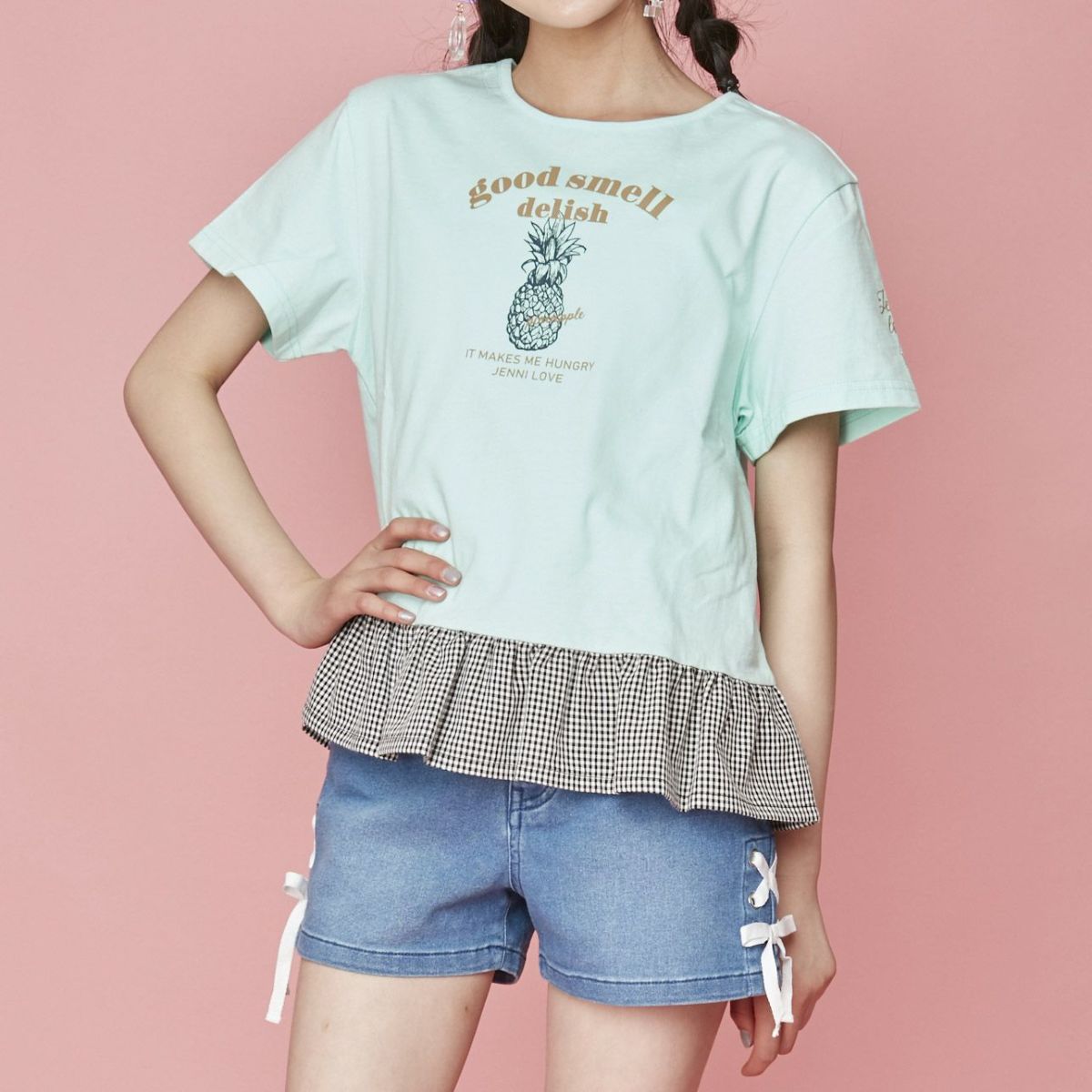 【79%off】前後2wayギンガムリボンTシャツ