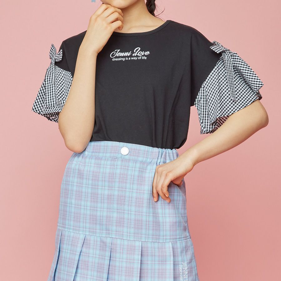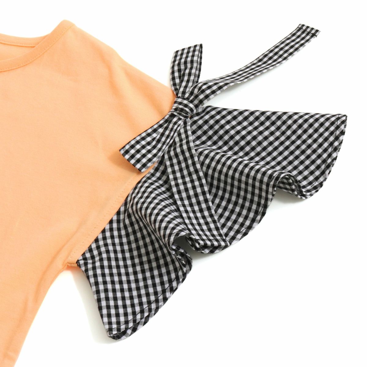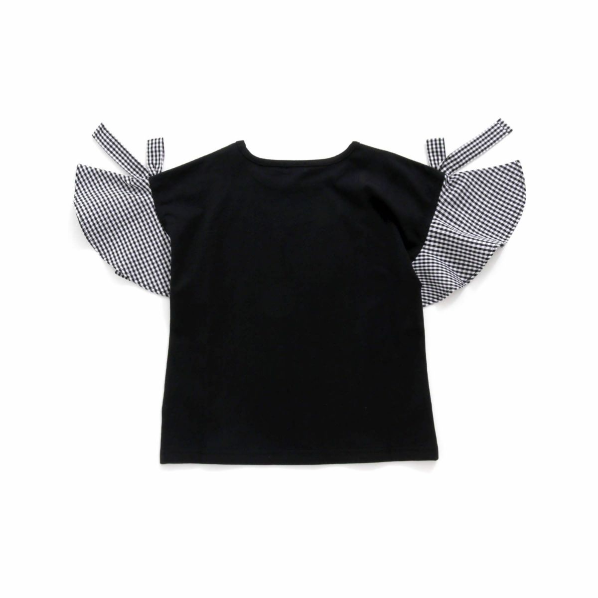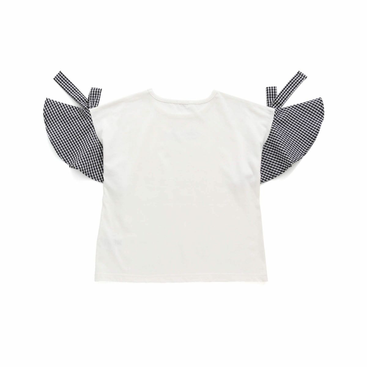 【79%off】ギンガムチェック袖リボンTシャツ