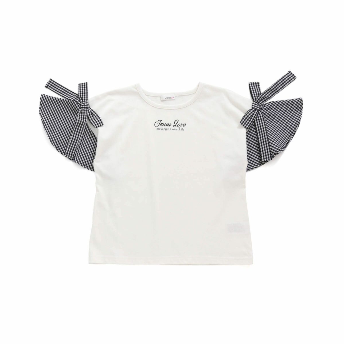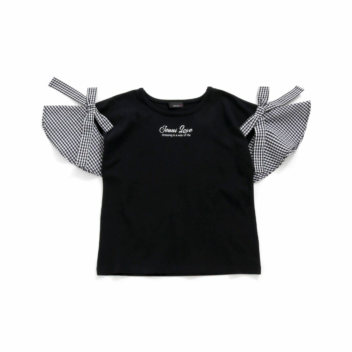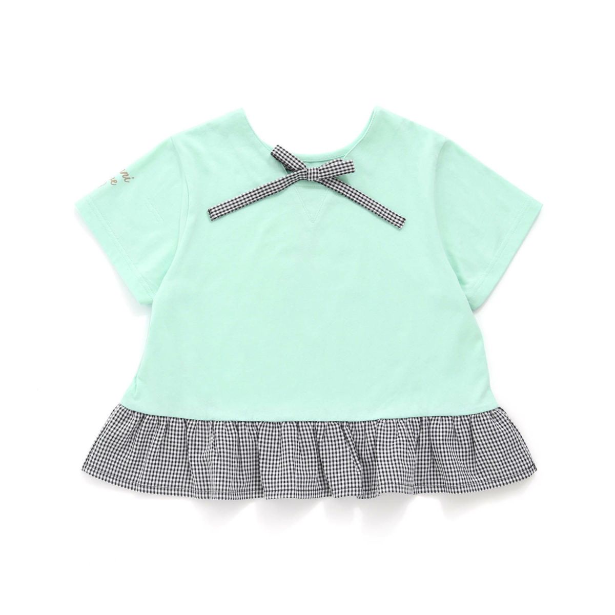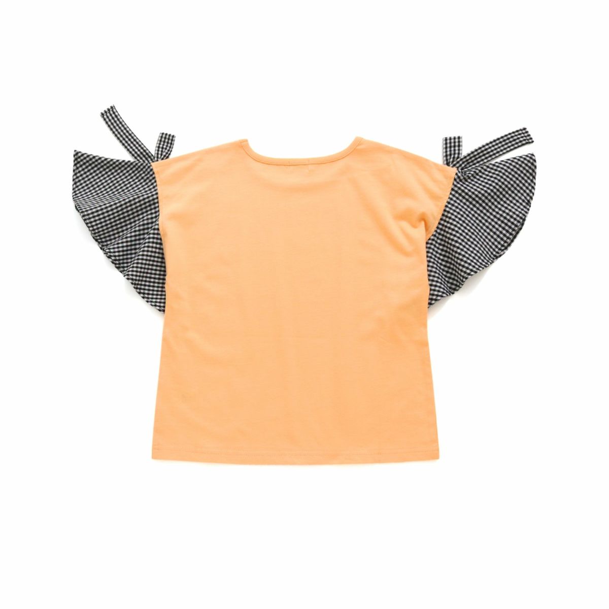 【79%off】ギンガムチェック袖リボンTシャツ