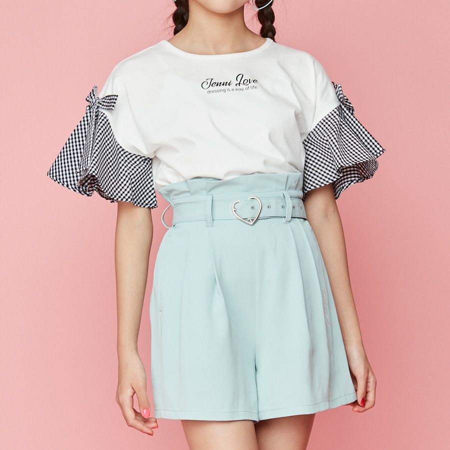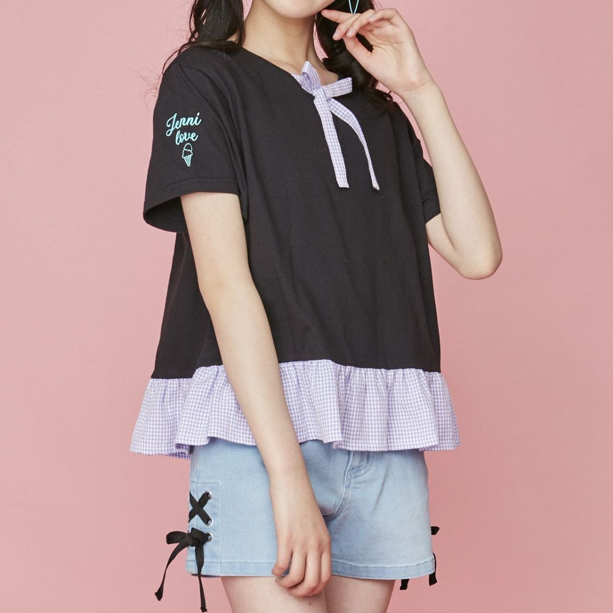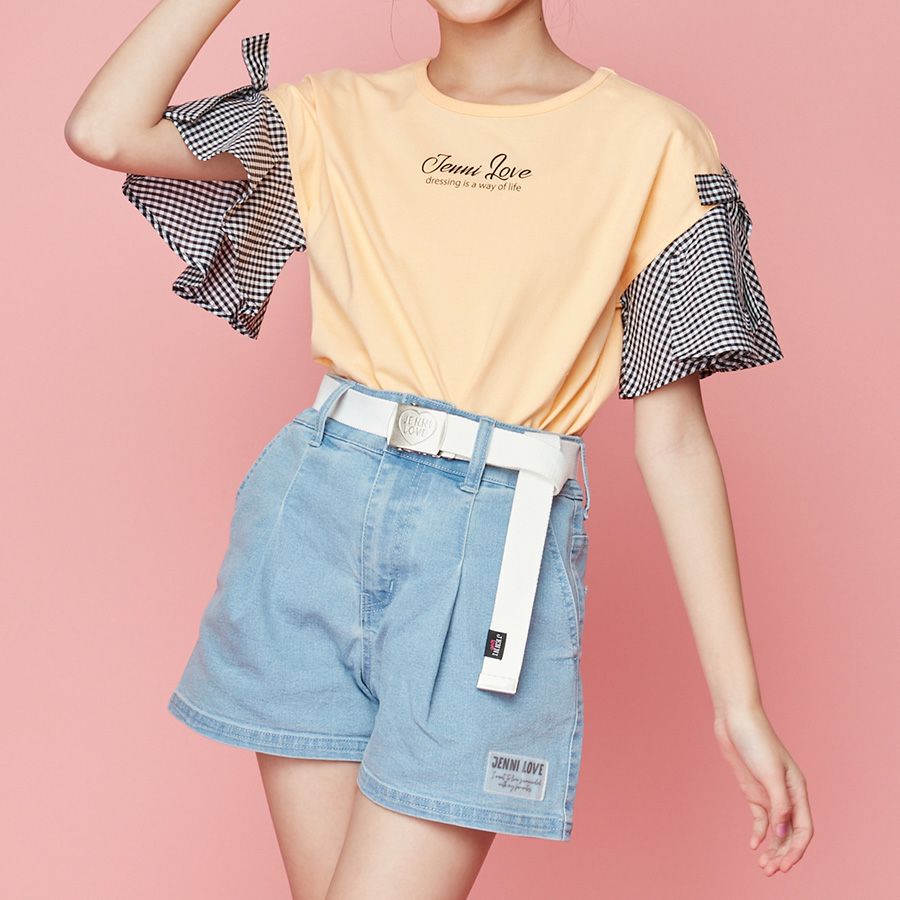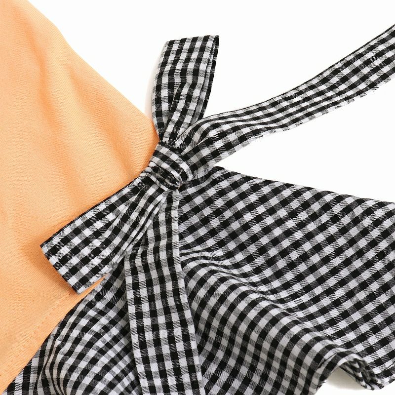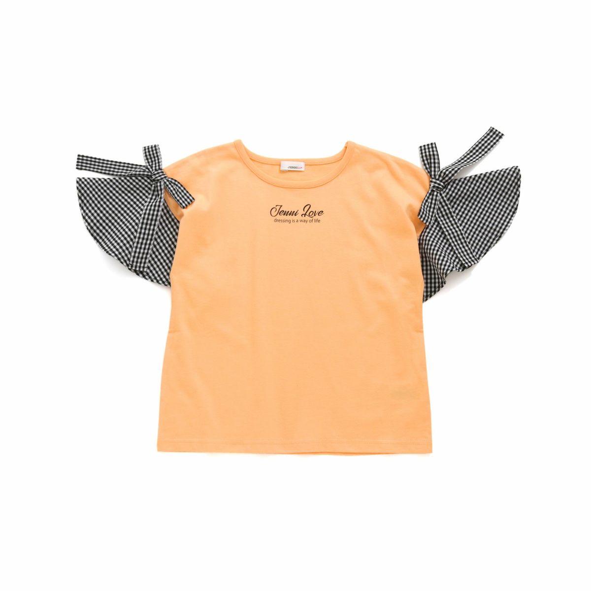 【79%off】ギンガムチェック袖リボンTシャツ