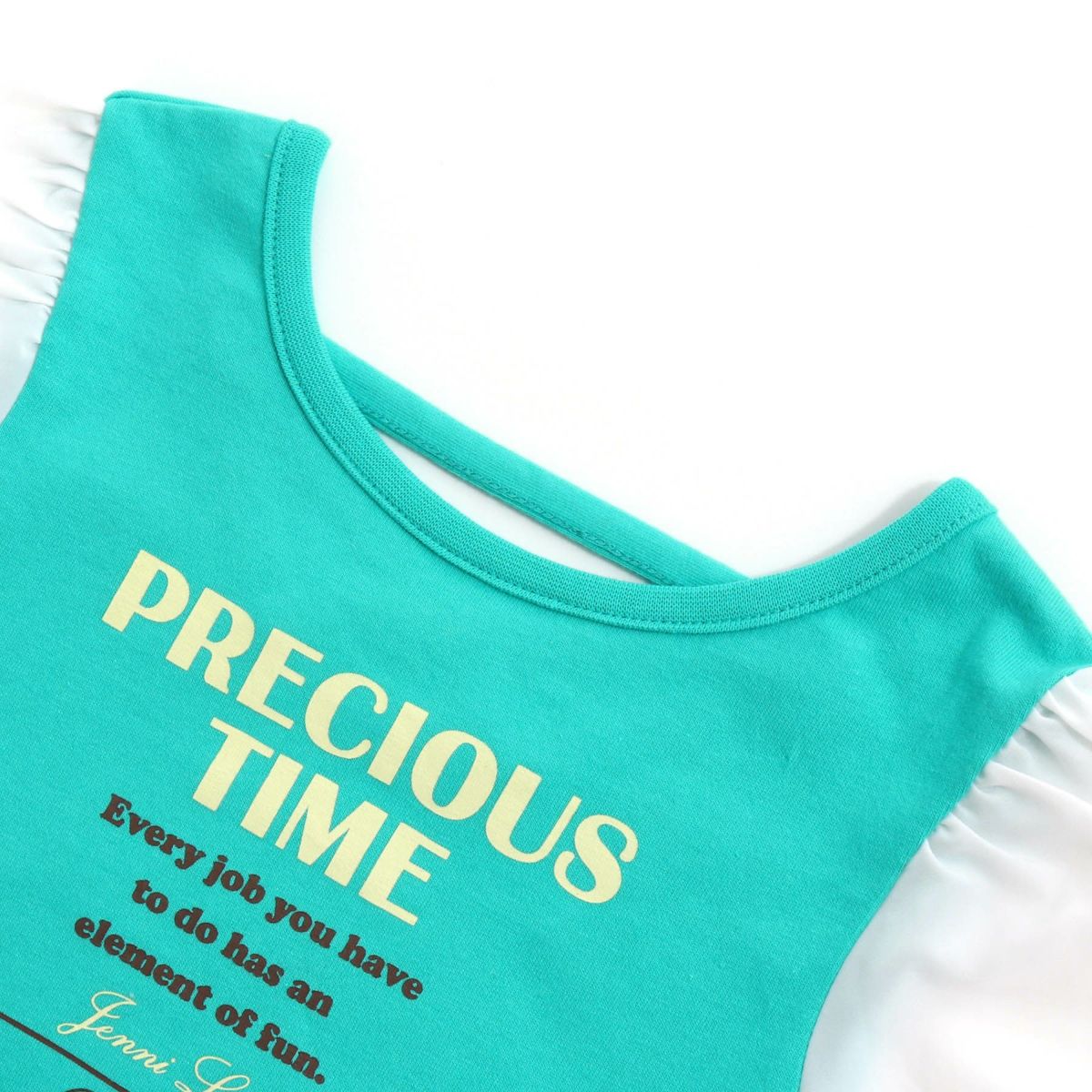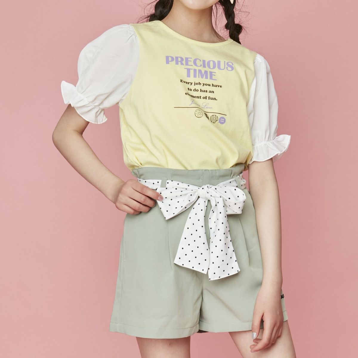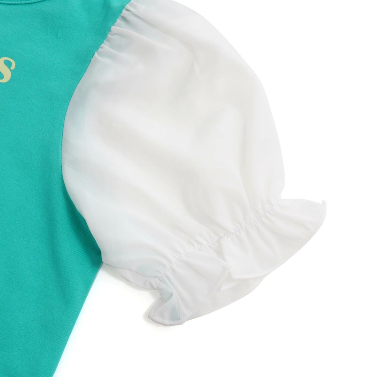【76%off】異素材ギャザーパフ袖Tシャツ
