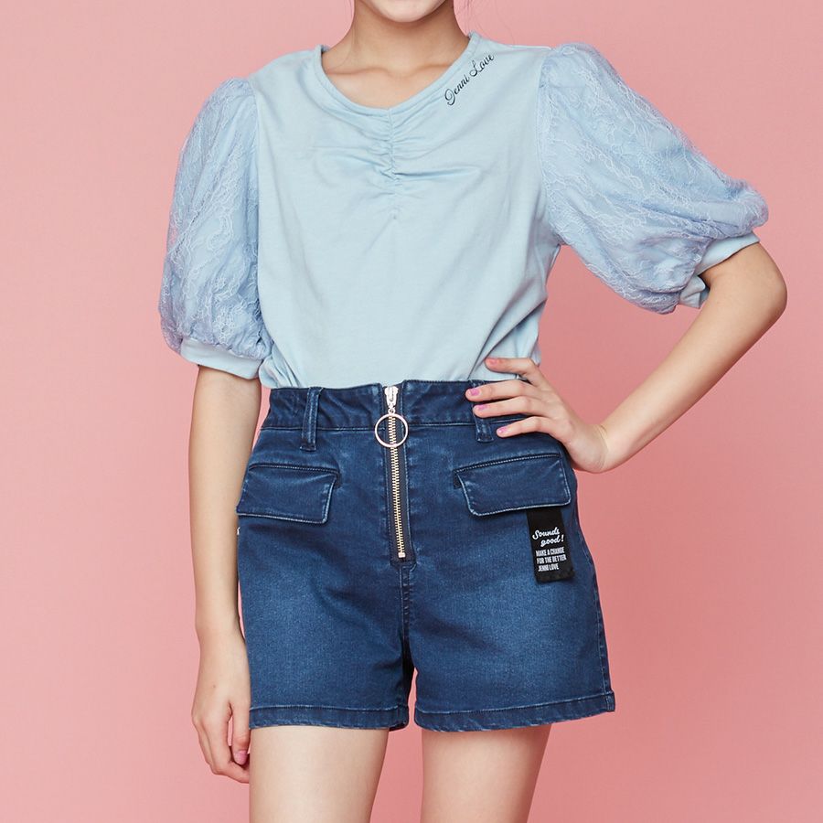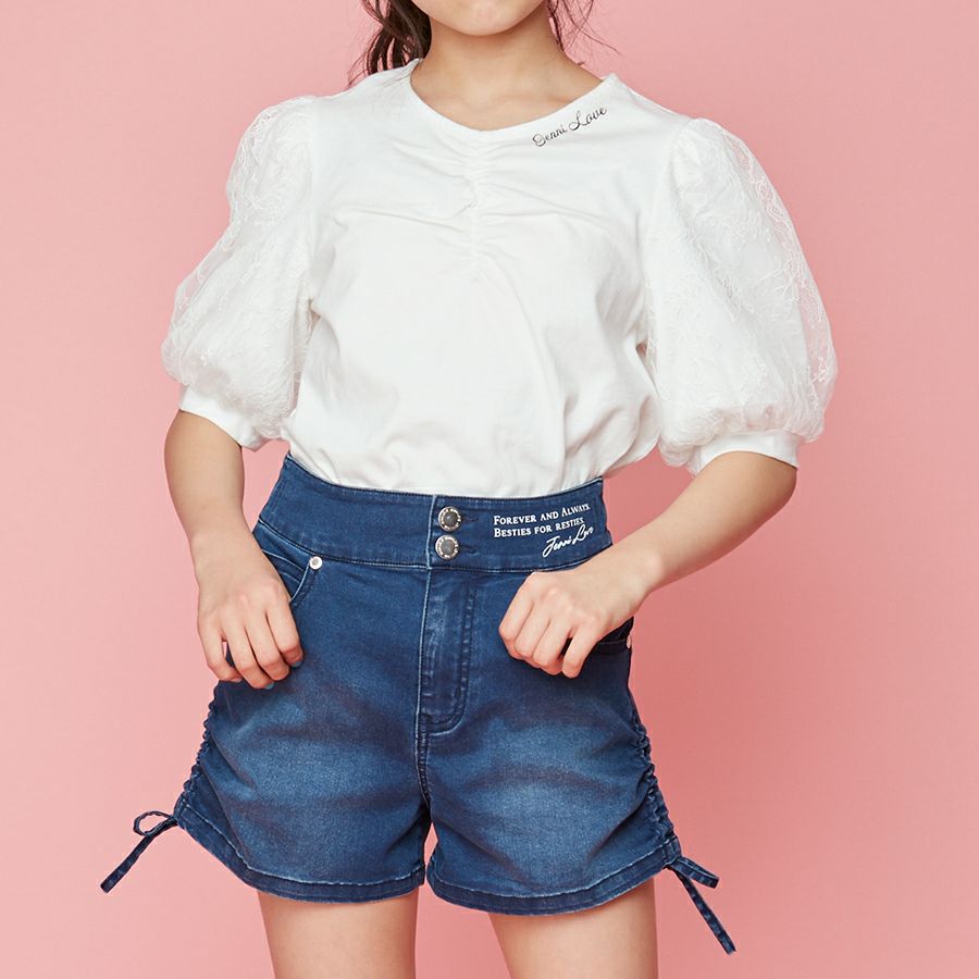 【79%off】レース袖フロントギャザーTシャツ