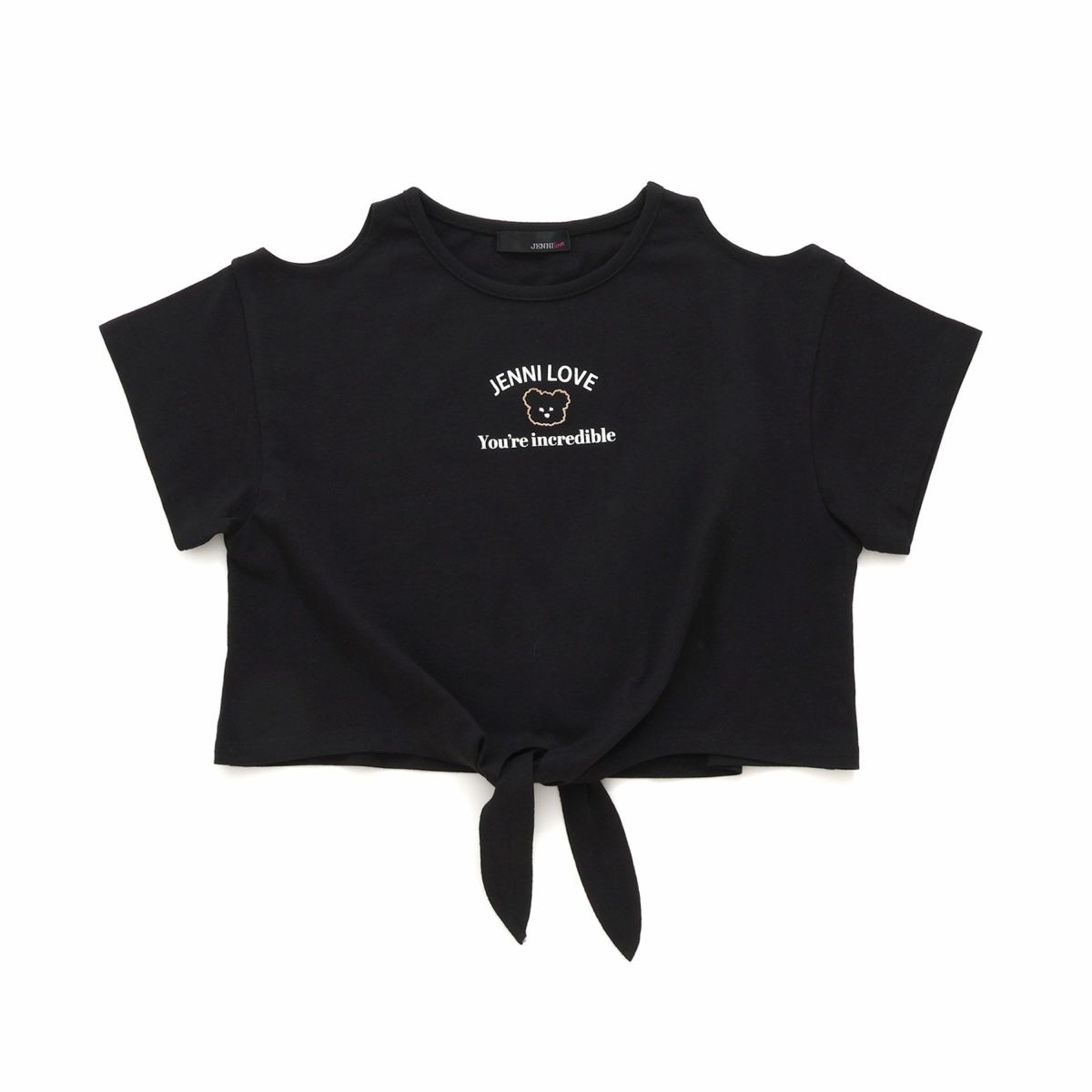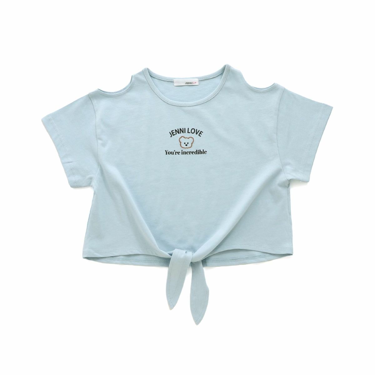 【78%off】肩あきリボンTシャツ
