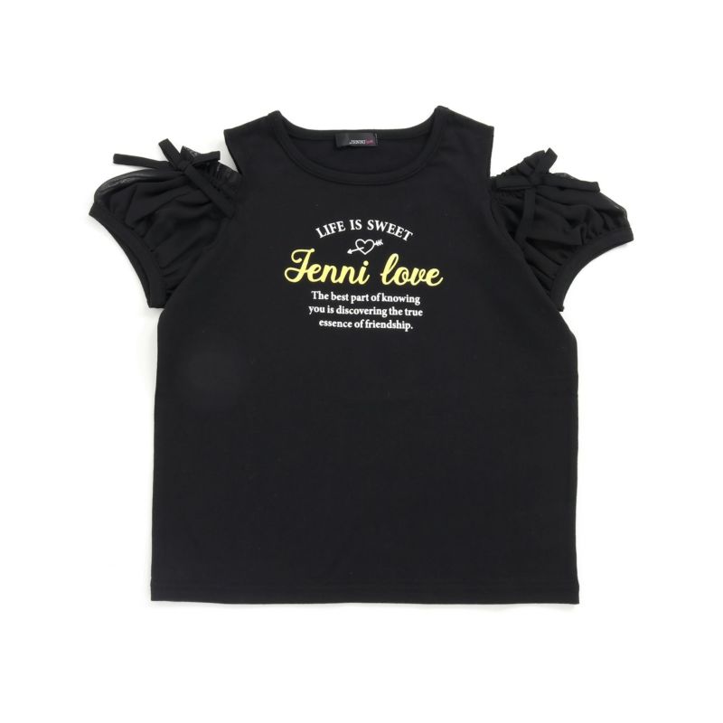【79%off】ラメロゴ肩あきパフスリーブTシャツ
