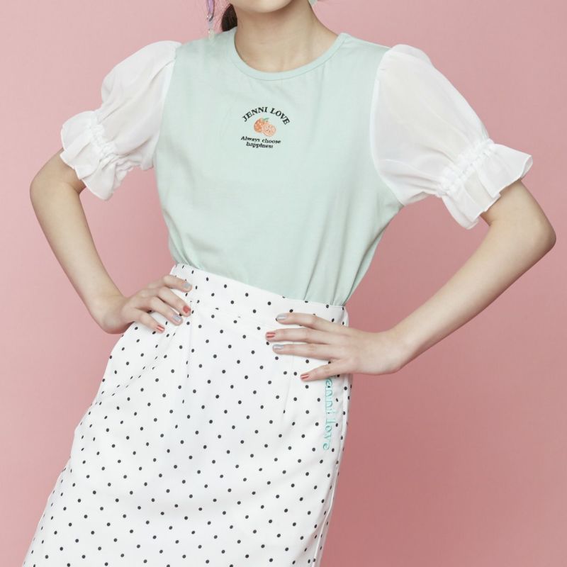 【79%off】シフォンパフスリーブフルーツTシャツ