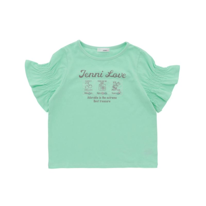クシュっとシャーリングになった袖が可愛らしいTシャツ♪
