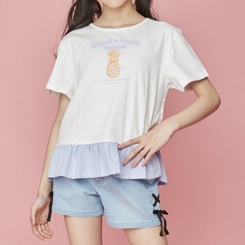 [素材]本体:綿100%、リブ部分:綿96%、ポリウレタン4% チェック部分:レーヨン55%、ポリエステル45%