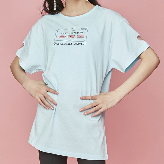 【83%off】防蚊袖ハートくり抜きロング丈Tシャツ