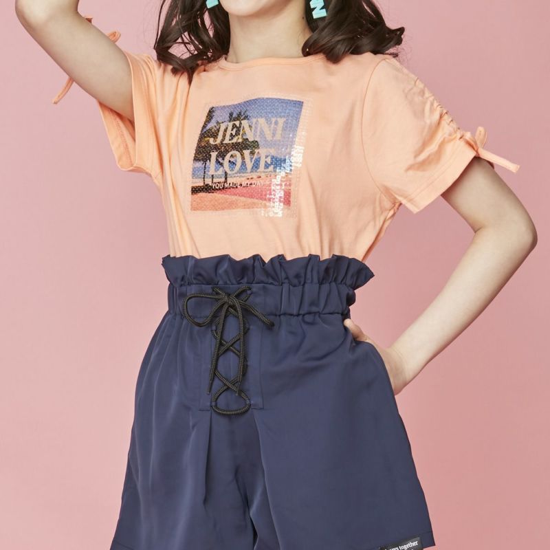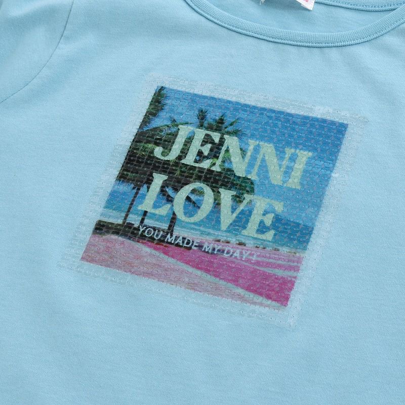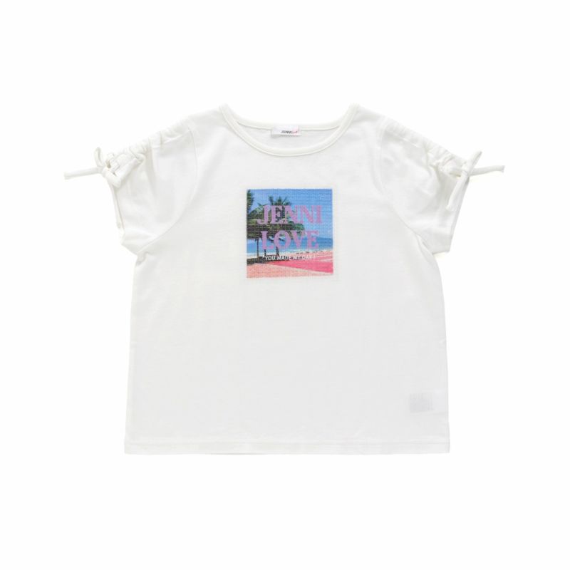 スパンコールにフォトプリントが入ったオシャレなデザインが目を引く1枚。