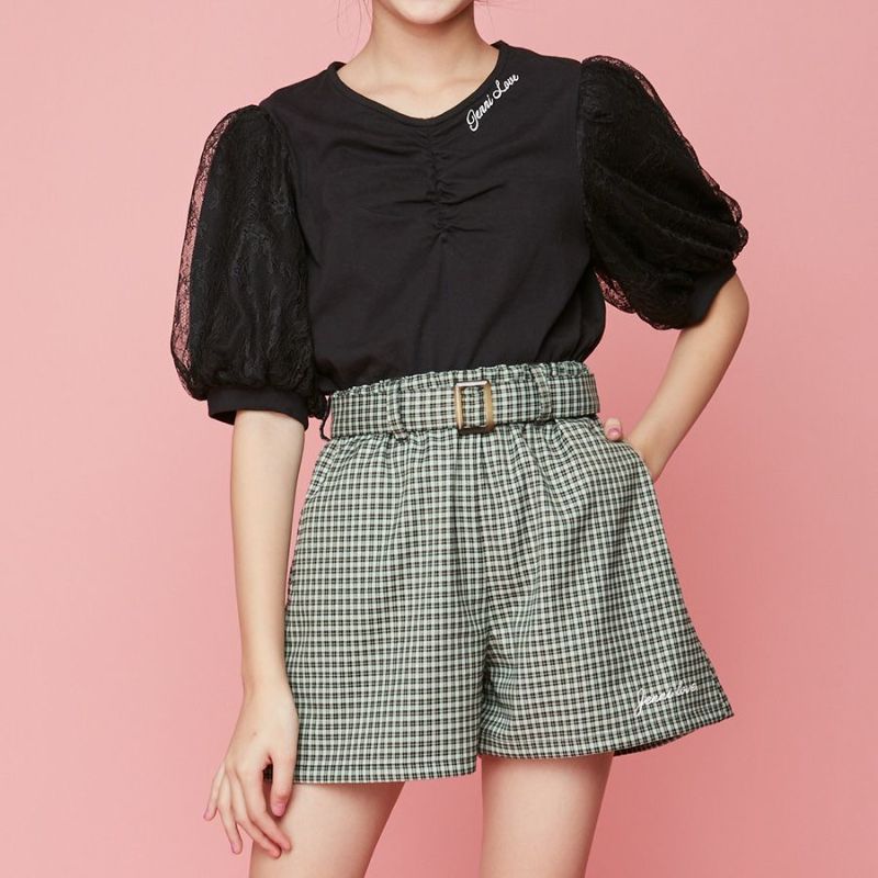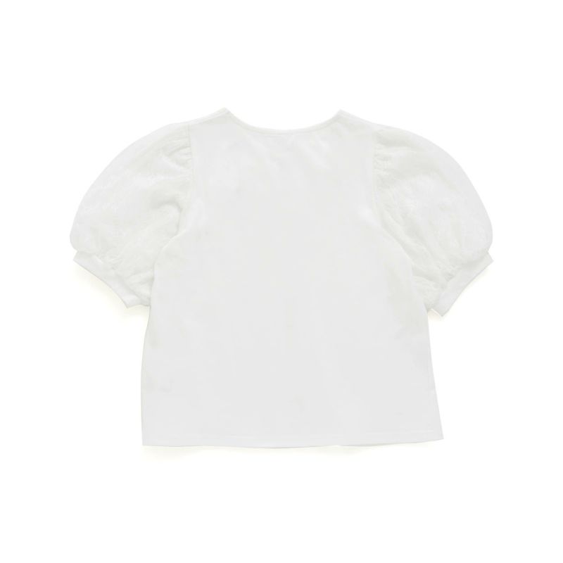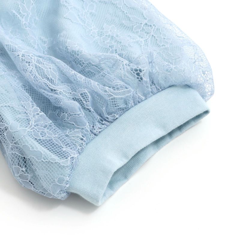 [素材]本体:綿100% 衿ぐり内側:綿97%、ポリウレタン3% 袖レース部分:ナイロン100%