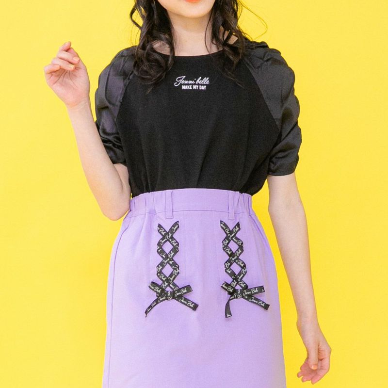 【76%off】異素材ギャザーパフ袖Tシャツ