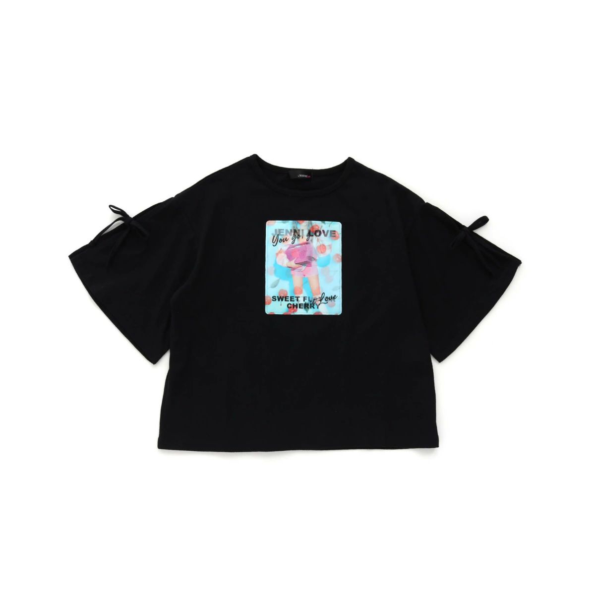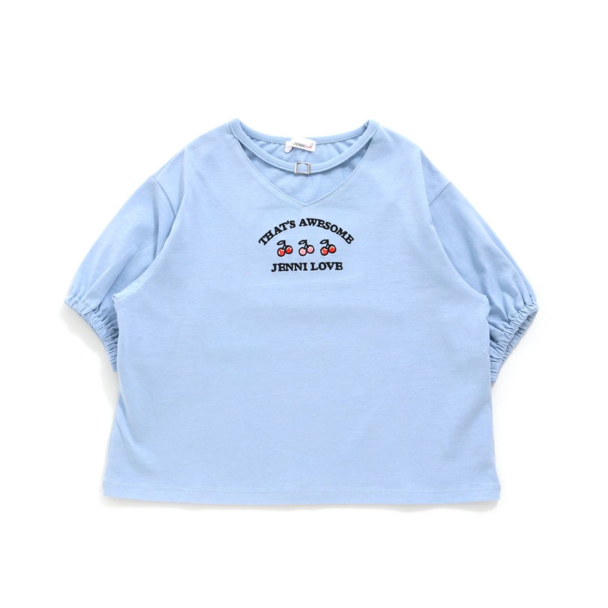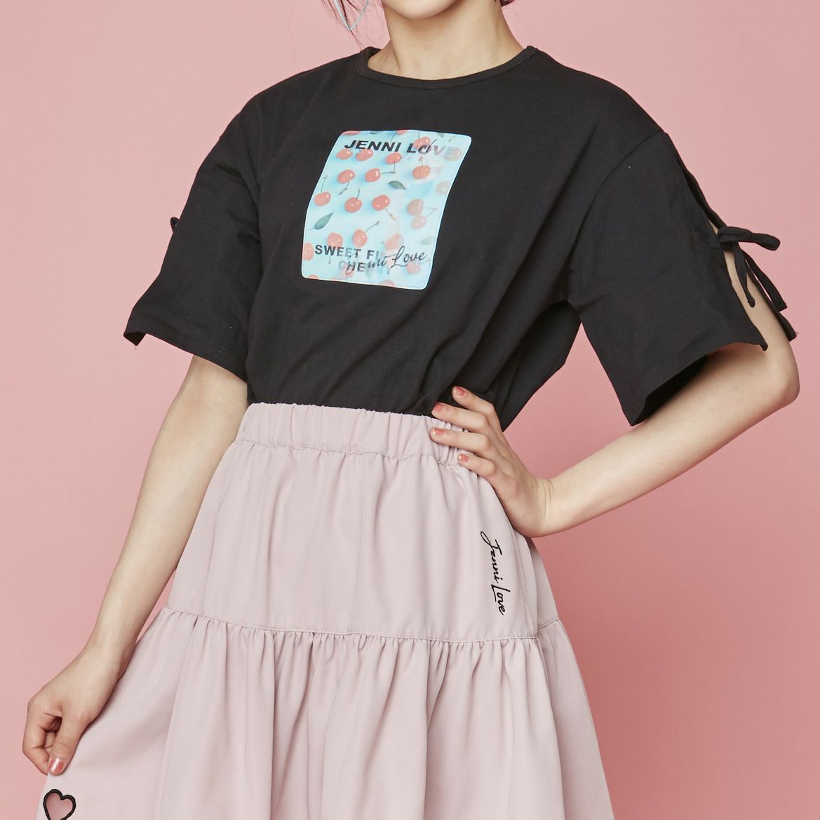【75%off】肩開きPVCテープ袖フレアTシャツ
