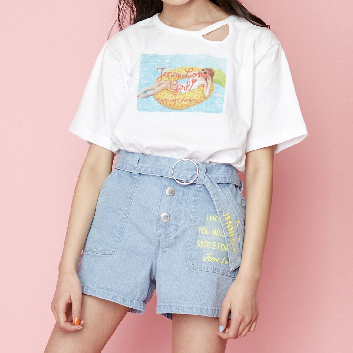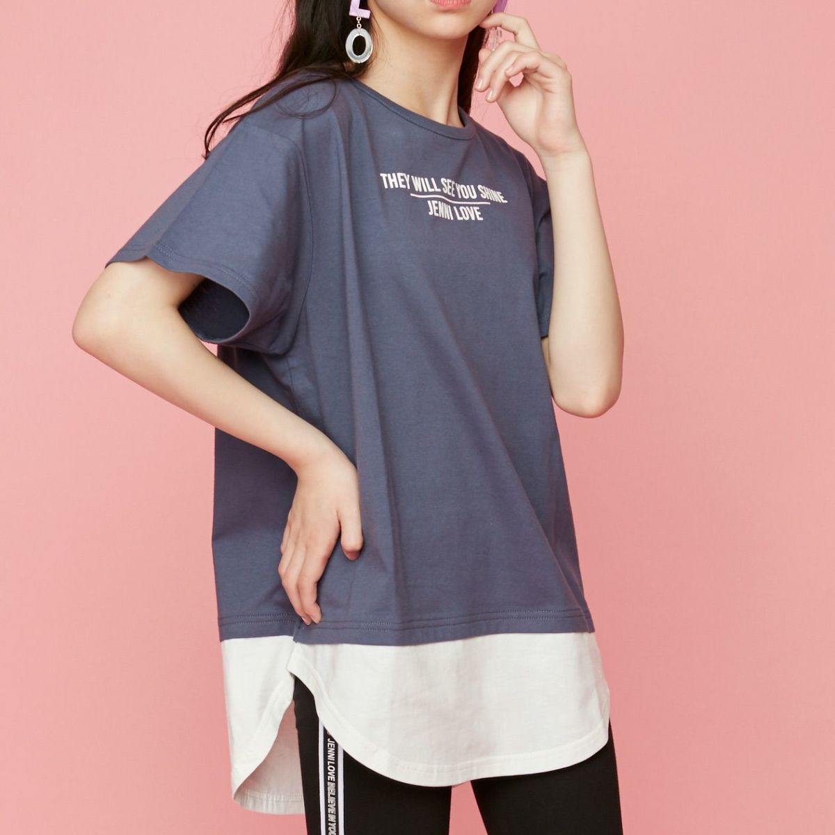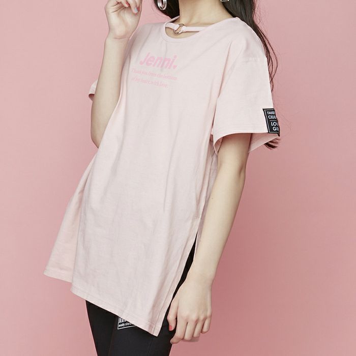 【75%off】肩開きPVCテープ袖フレアTシャツ