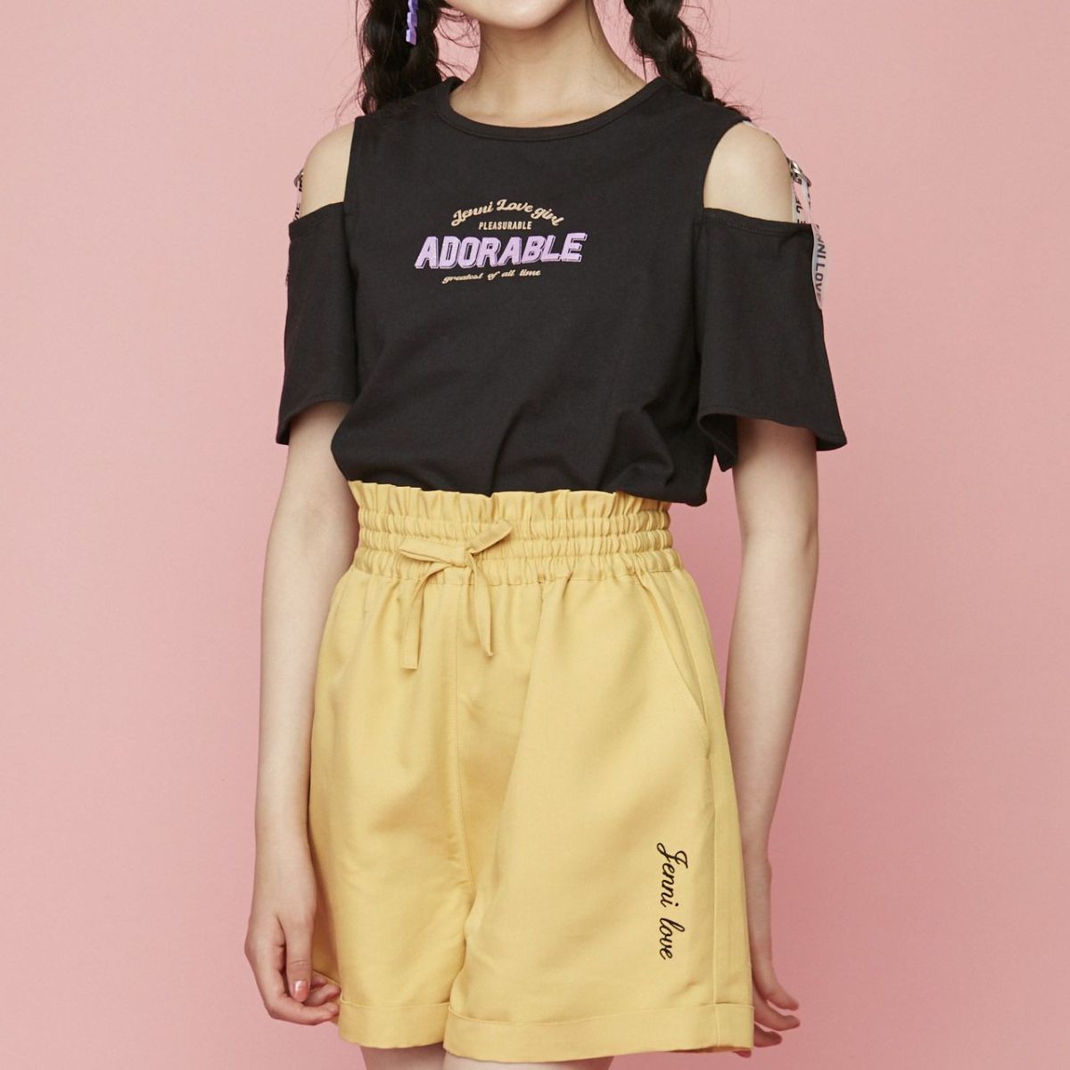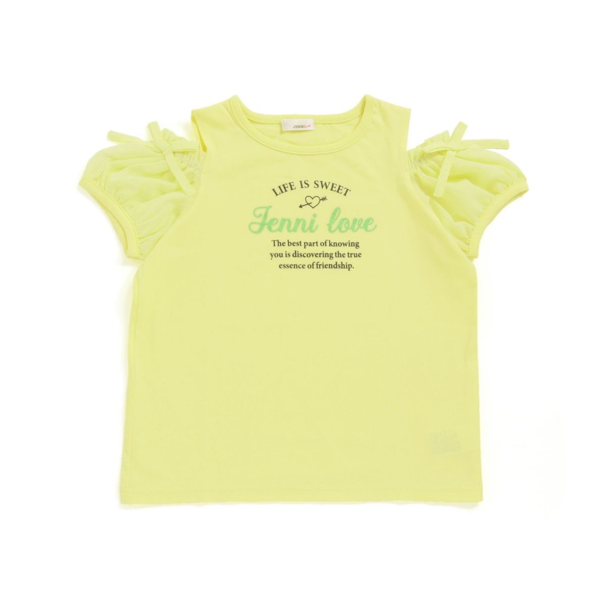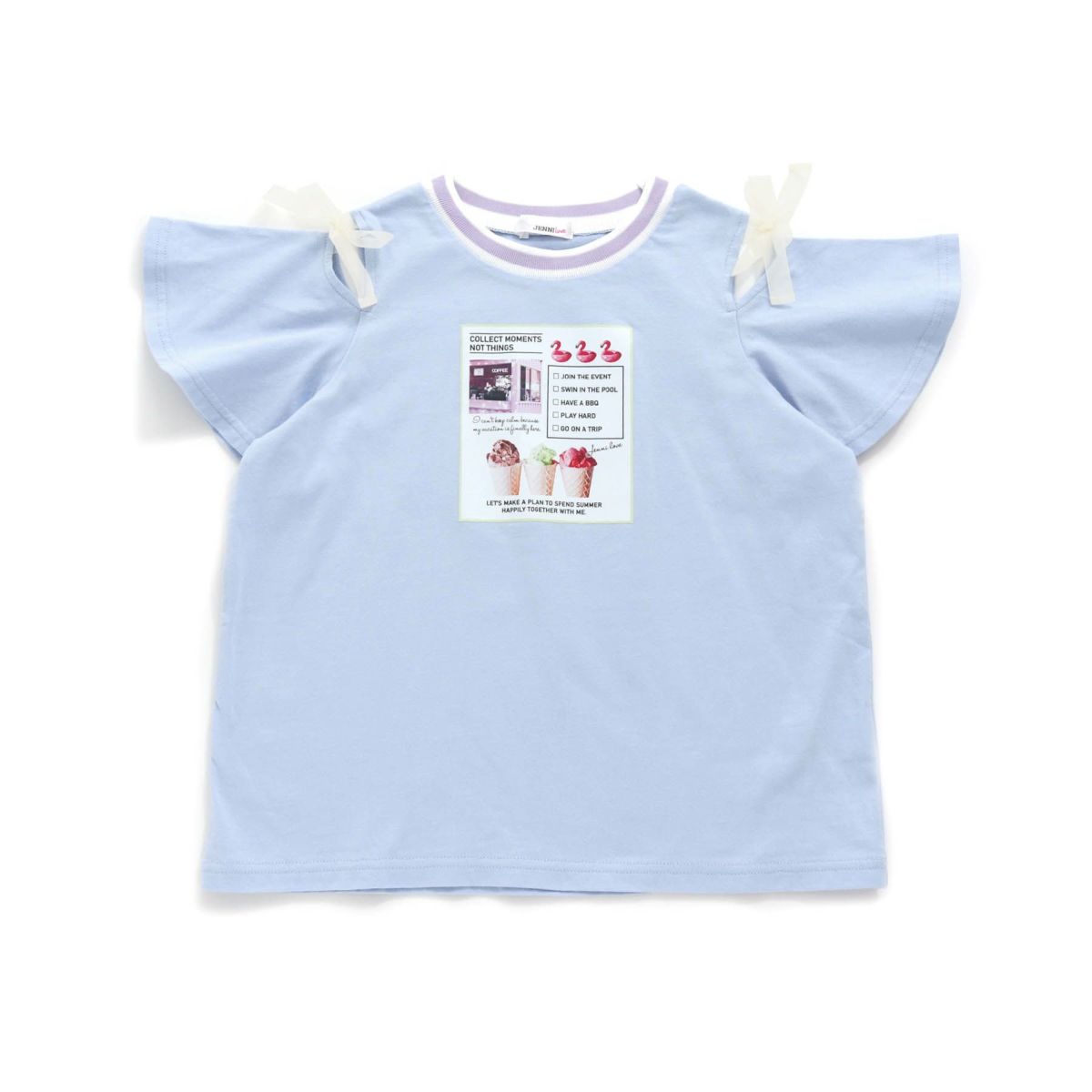 【79%off】ラメロゴ肩あきパフスリーブTシャツ