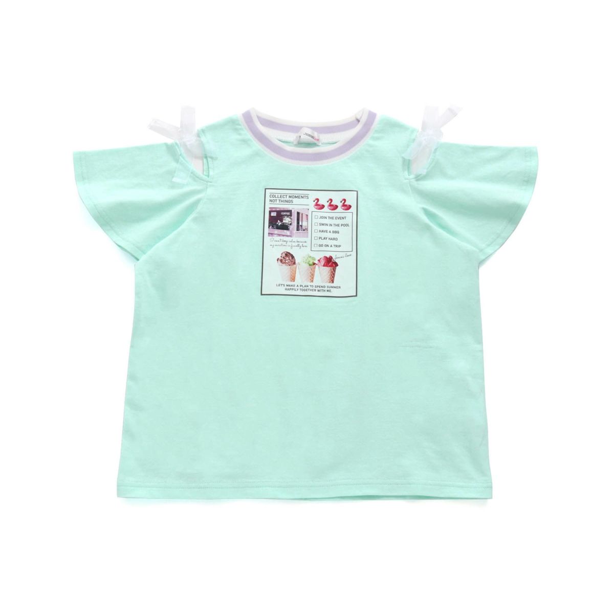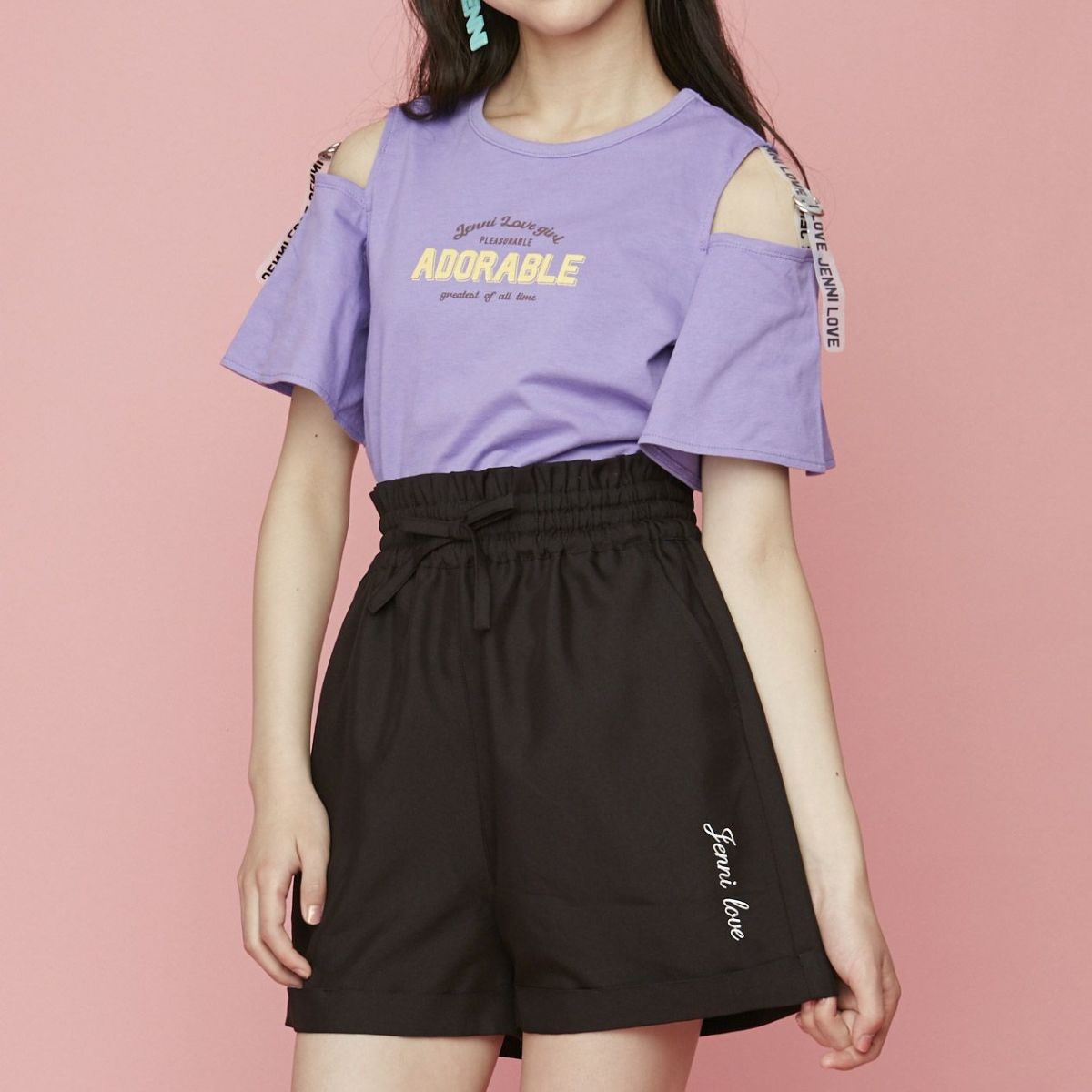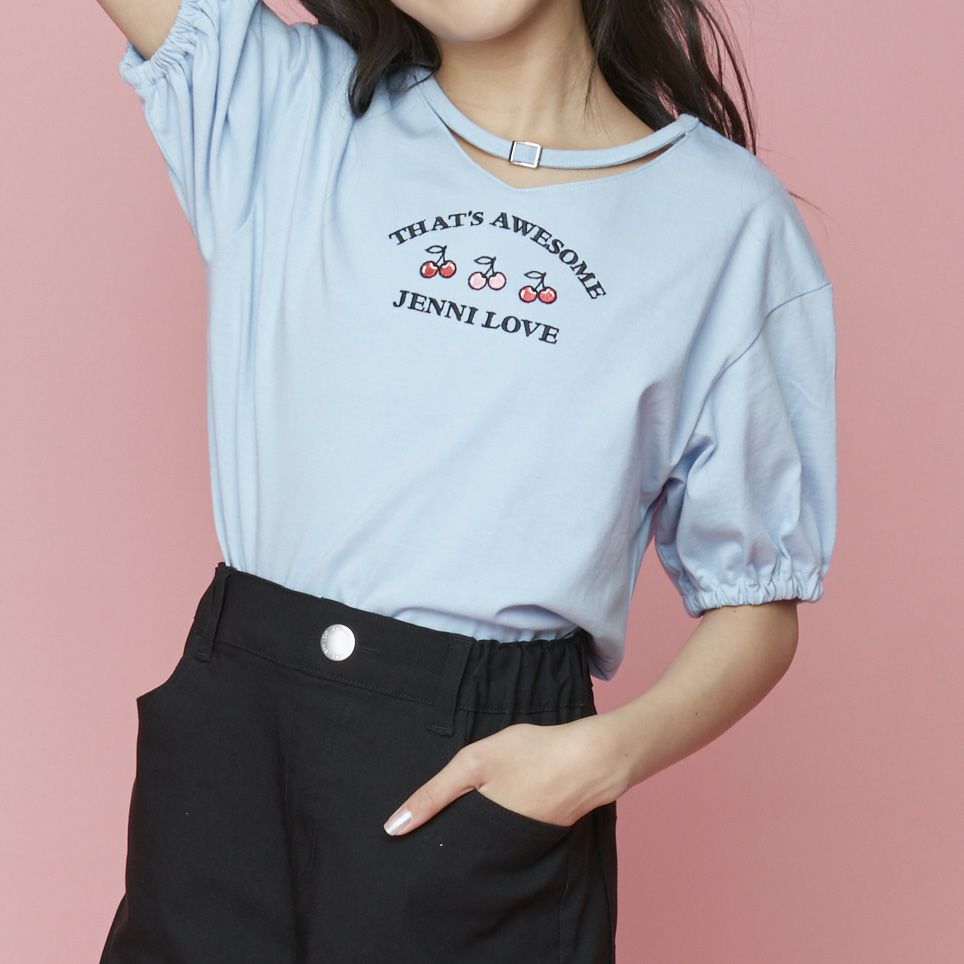 【79%off】ラメロゴ肩あきパフスリーブTシャツ