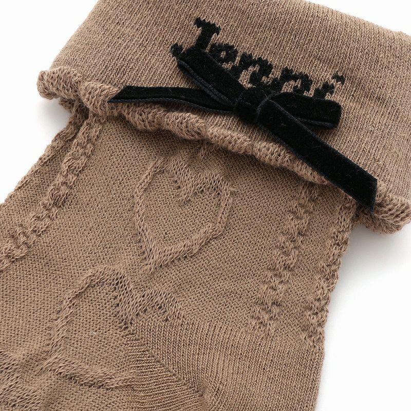 ハート柄の編みデザインにベロアリボンが付いたガーリー好きさん必見の一足♪