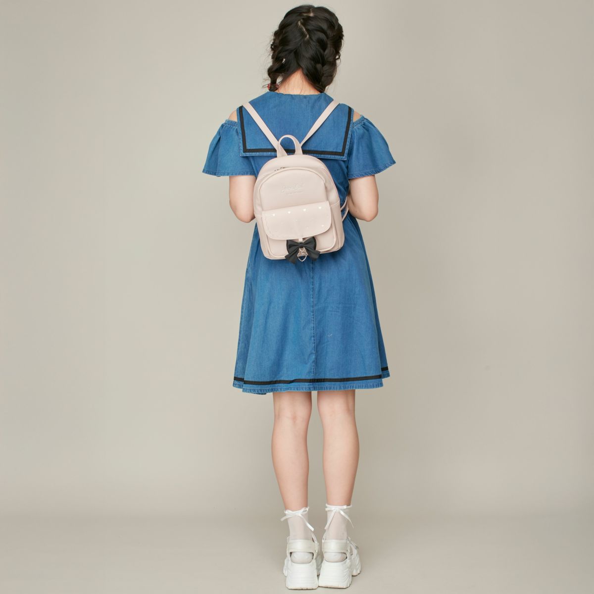 【75%off】リボン付きポケット合皮ミニリュック