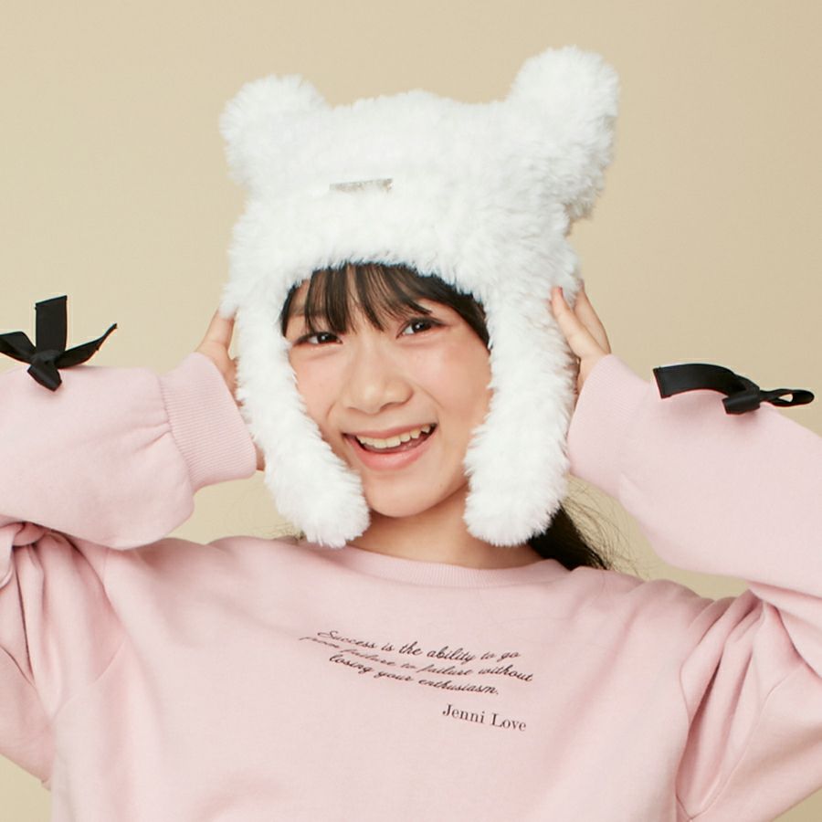 ふわふわもこもこのエコファーニット素材のねこみみキャップ!