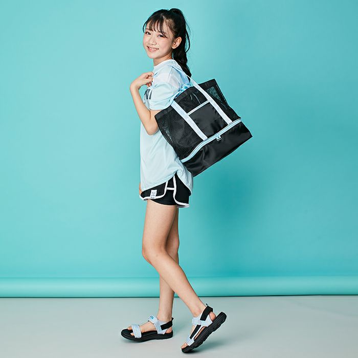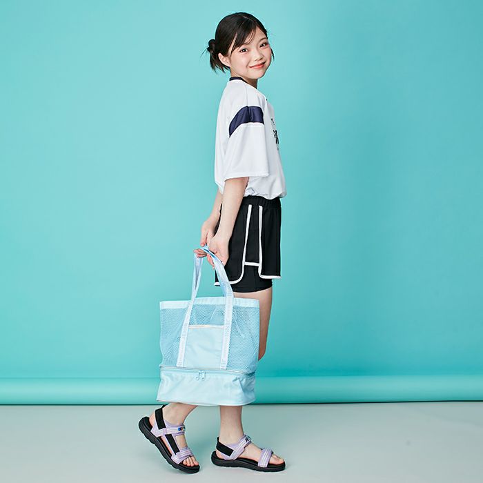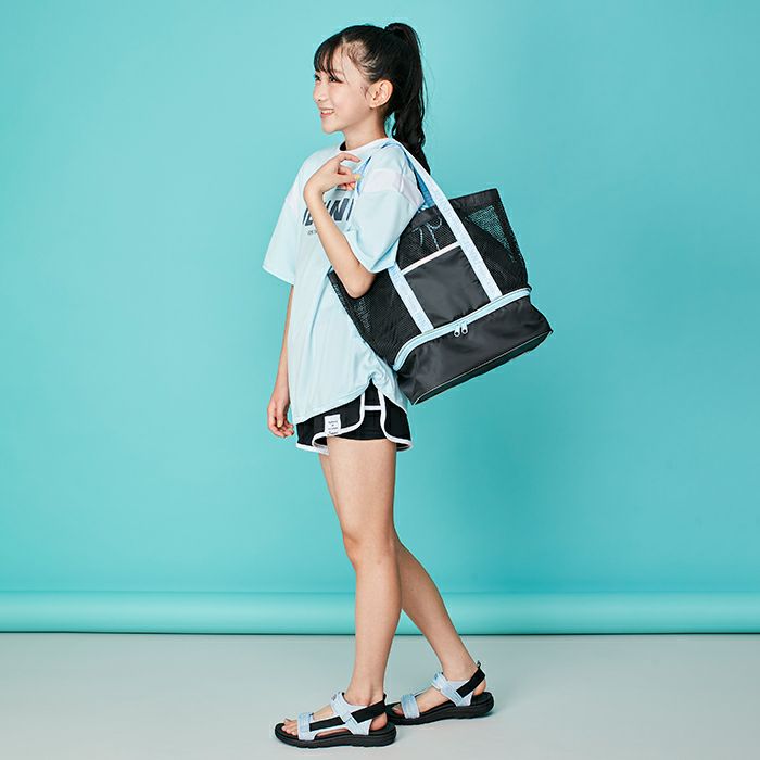 メッシュ素材のプールバッグは2ルームで収納力バツグン!