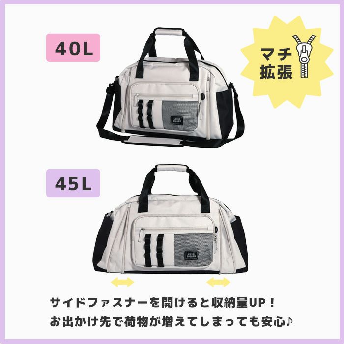 サイドのファスナーでカンタンにサイズ調節ができるので旅先でも安心。