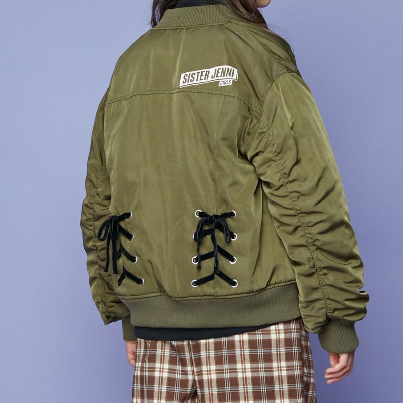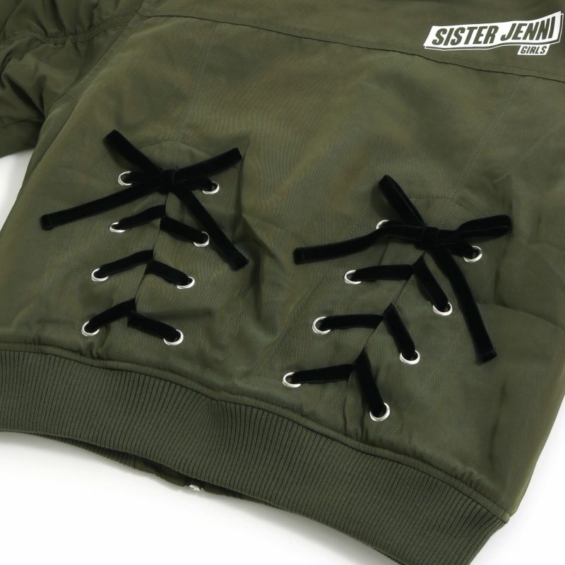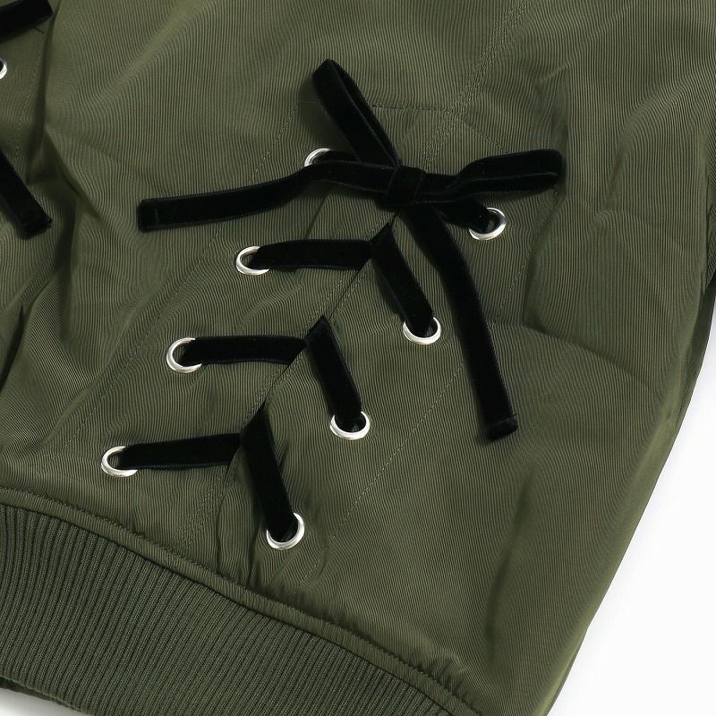 スリーブのたっぷりとしたボリュームに後ろはベロアリボンのレースアップが施されたトレンド感満載のMA-1♪
