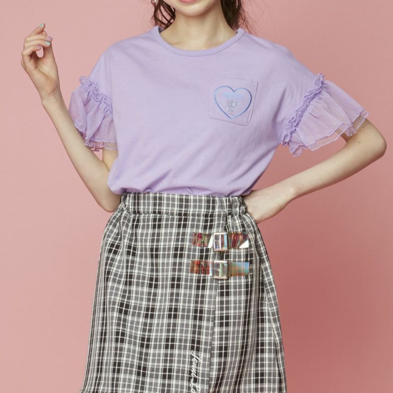 袖はチュール素材が二重になっており、オシャレ度アップの一枚。