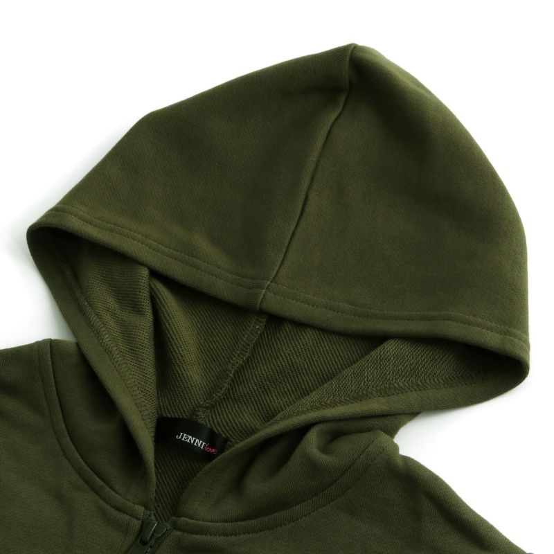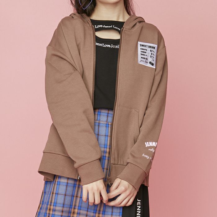 胸元に付いたサテンのアップリケが目を引くパーカー。